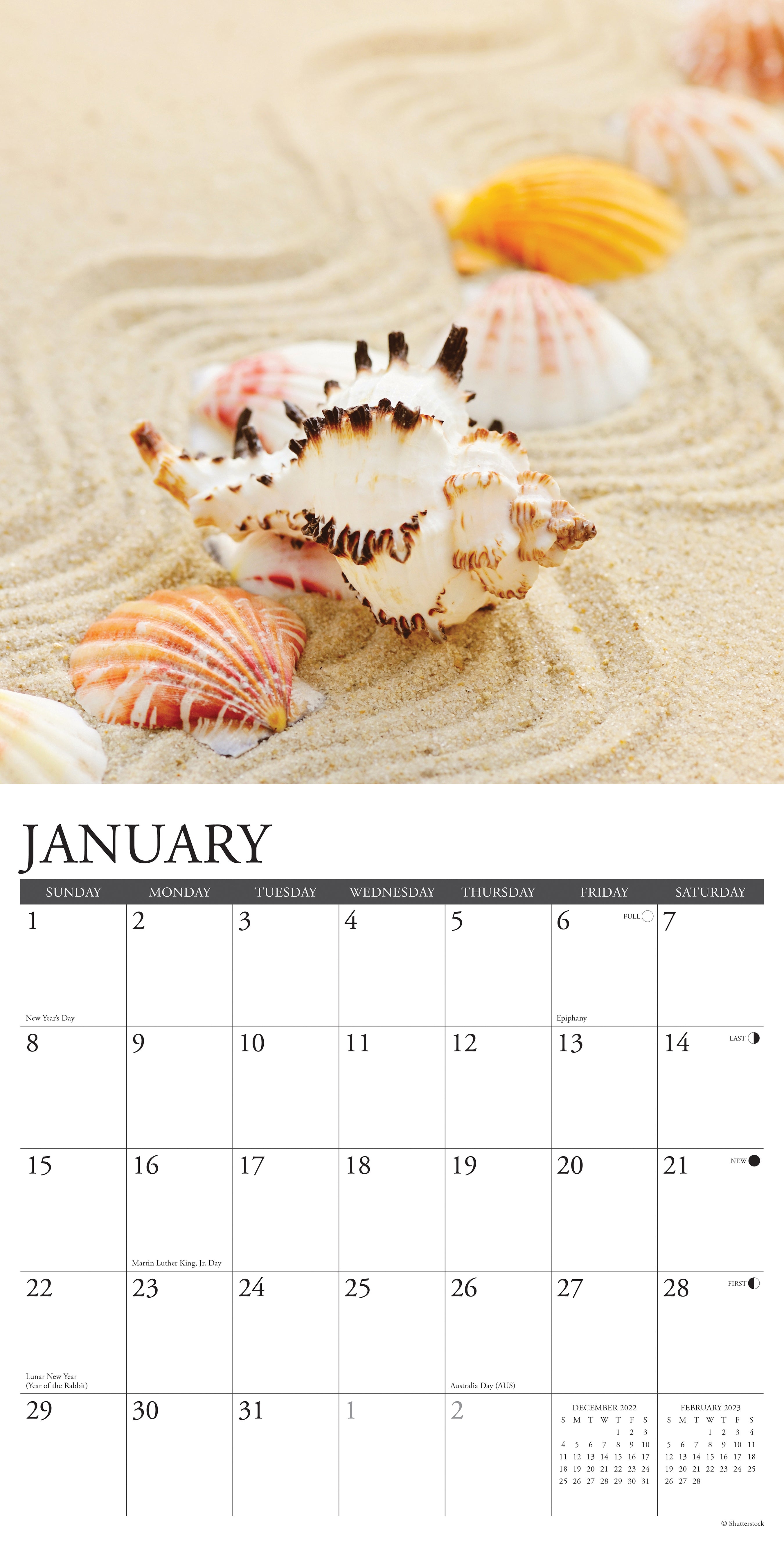 To the observant, seashells tell tales of corals and currents, tides and the tropics, sea and sand. Twelve dazzling, full color photographs depict the mysterious beauty of these marine mementos. Printed with soy-based inks on FSC certified paper, this 12" x 12" wall calendar features large monthly grids that offer ample room for jotting notes, along with six bonus months of July through December of 2022. Also includes moon phases (CST), standard U.S. and international holidays.