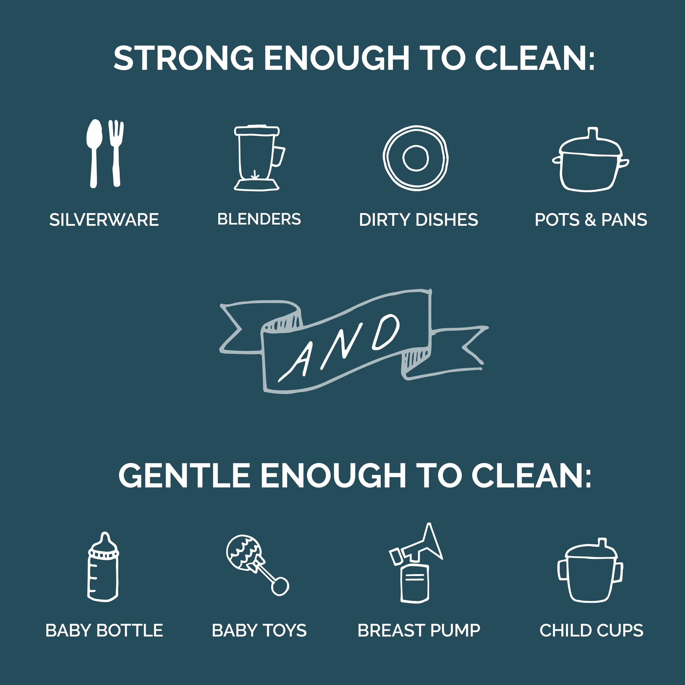 Sometimes you’ve got to pull out the big guns. Ultra Power Plus Seventh Generation Dish Detergent Liquid Gel tackles the dirty work with our PlantTech™ formula featuring 50% more* micro-scrubbing enzymes. The hardworking enzymes power away stuck-on food and tough stains to leave dishes sparkling clean, no pre-rinse required. This dishwashing detergent liquid has a powerful dual action formula that is made with plant-based ingredients and is free of synthetic fragrances, dyes, phosphates, or chlorine bleach. And it’s biodegradable. Clean dishes, clean conscience. For more than 30 years, Seventh Generation has been thoughtfully formulating safe and effective plant-based products that work. Really well. Our dishwashing liquid gel uses powerful plant-based ingredients like surfactants and enzymes to break down tough residue and lift away food, leaving your dishes sparkling clean. So, how does it all work? The liquid dishwasher detergent enzymes cut through grease and food by breaking down starch and protein-based residue, while the surfactants remove dirt and grease by holding the molecules in suspension, so they can wash away. Yes, even those fussy egg stains.