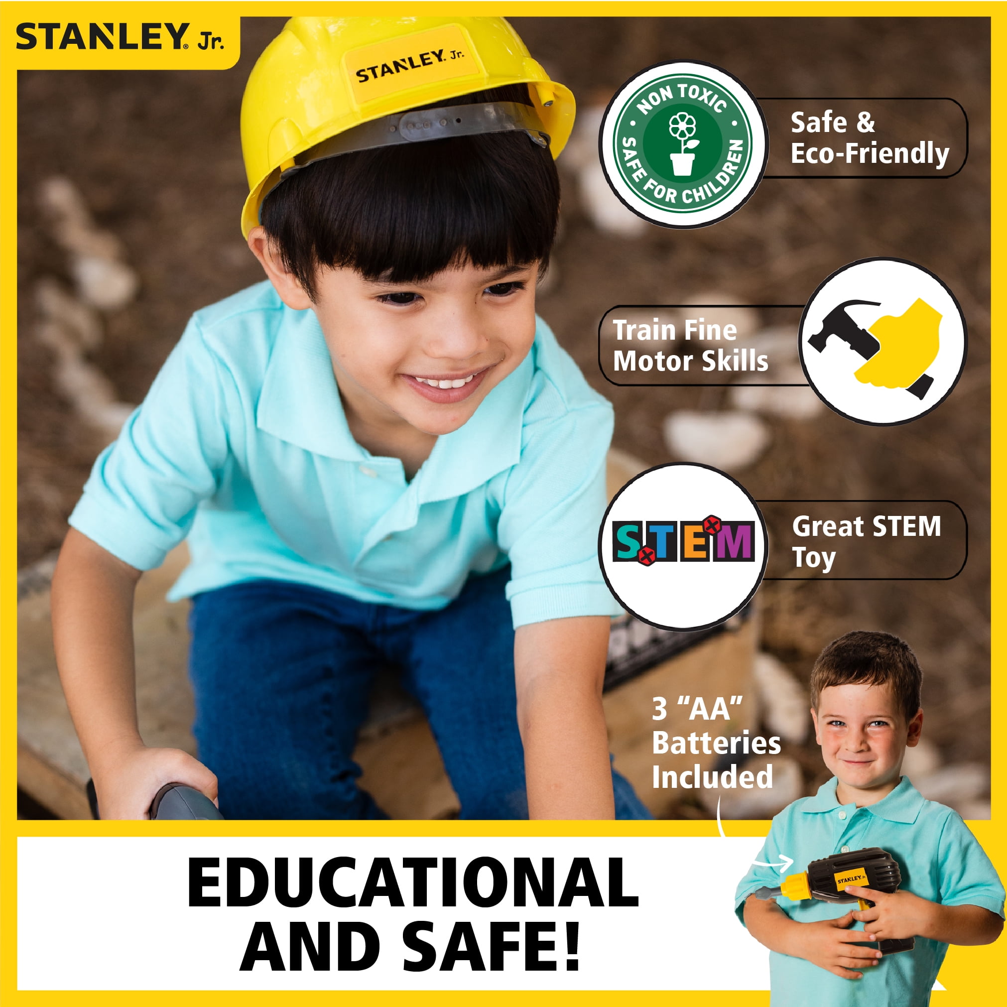 • Role-play: Make it possible for your child to role-play as a handy man during his or her playing time by getting the child this new 5-pc Tool Set and Toolbox play kit for him or her. • Sturdy Tools for ages 3+: The tools are sturdy and very durable. This allows your child to happily play around the house. • Spacious Toolbox: There is an abundance of space for your child to store all his or her workman tools after play and also to carry them when heading out to play. • Organize: Help your child learn to stay organized after each playing session. Make it a routine for him or her to store the playing tools in the STANLEY Jr toolbox each time. • Long lasting: The material of the tools and toolbox are hard plastic, which ensures that the tools and toolbox remain in good condition as your child plays with it.