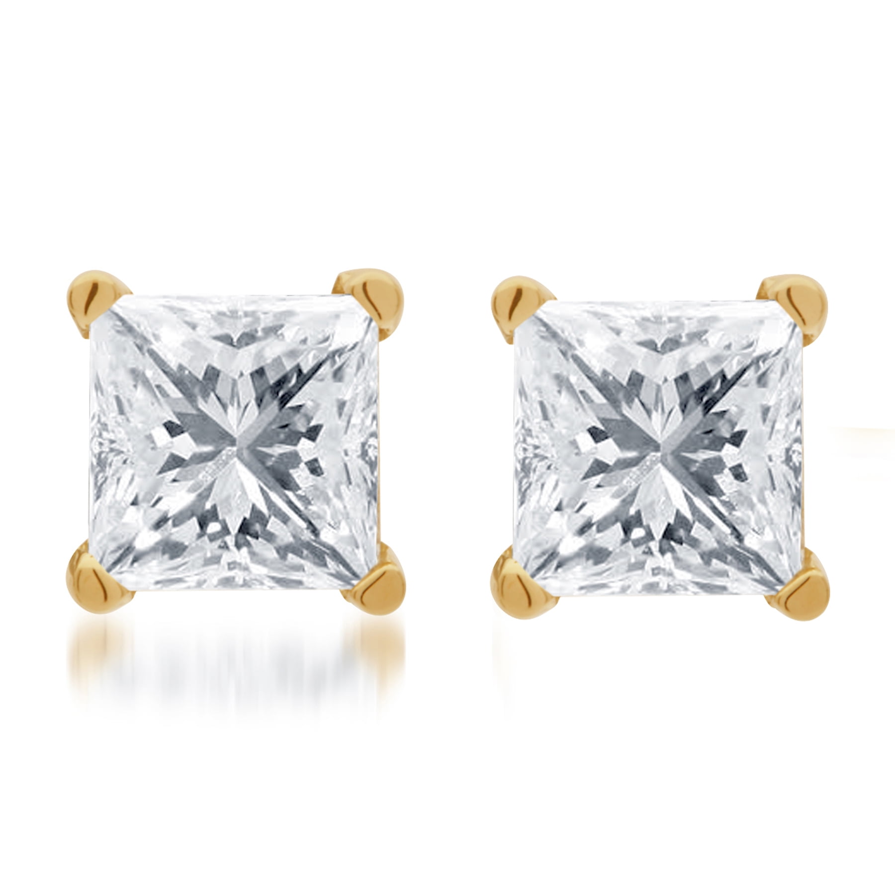 Arista 1.5 ct Princess White Diamond Stud Earrings in 14K Yellow Gold (I-J, I2-I3)