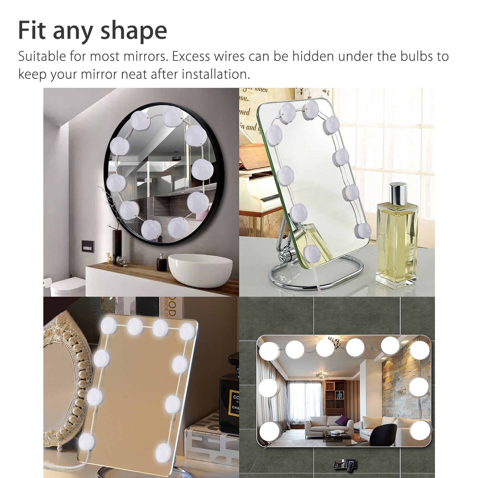 - The tapes of the Hollywood vanity mirror light are strongly sticky, it is not easy to fall off.