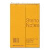 Ruled pages with single margin line drawn down the middle are perfect for big-decision pro vs. con lists or everyday shopping lists and to-do reminders.Plastic wire binding keeps all the pages neatly together and wont catch on other papers, bags, or clothing.Sturdy back allows for easy writing, even while standing, and the 6" x 9" size slips easily into a backpack, briefcase, or bag.Steno book provides unperforated, unpunched sheets, meaning pages wont rip out easily.Universal-1PK Steno Pads, Pitman Rule, Red Cover, 60 Green-Tint 6 x 9 Sheets