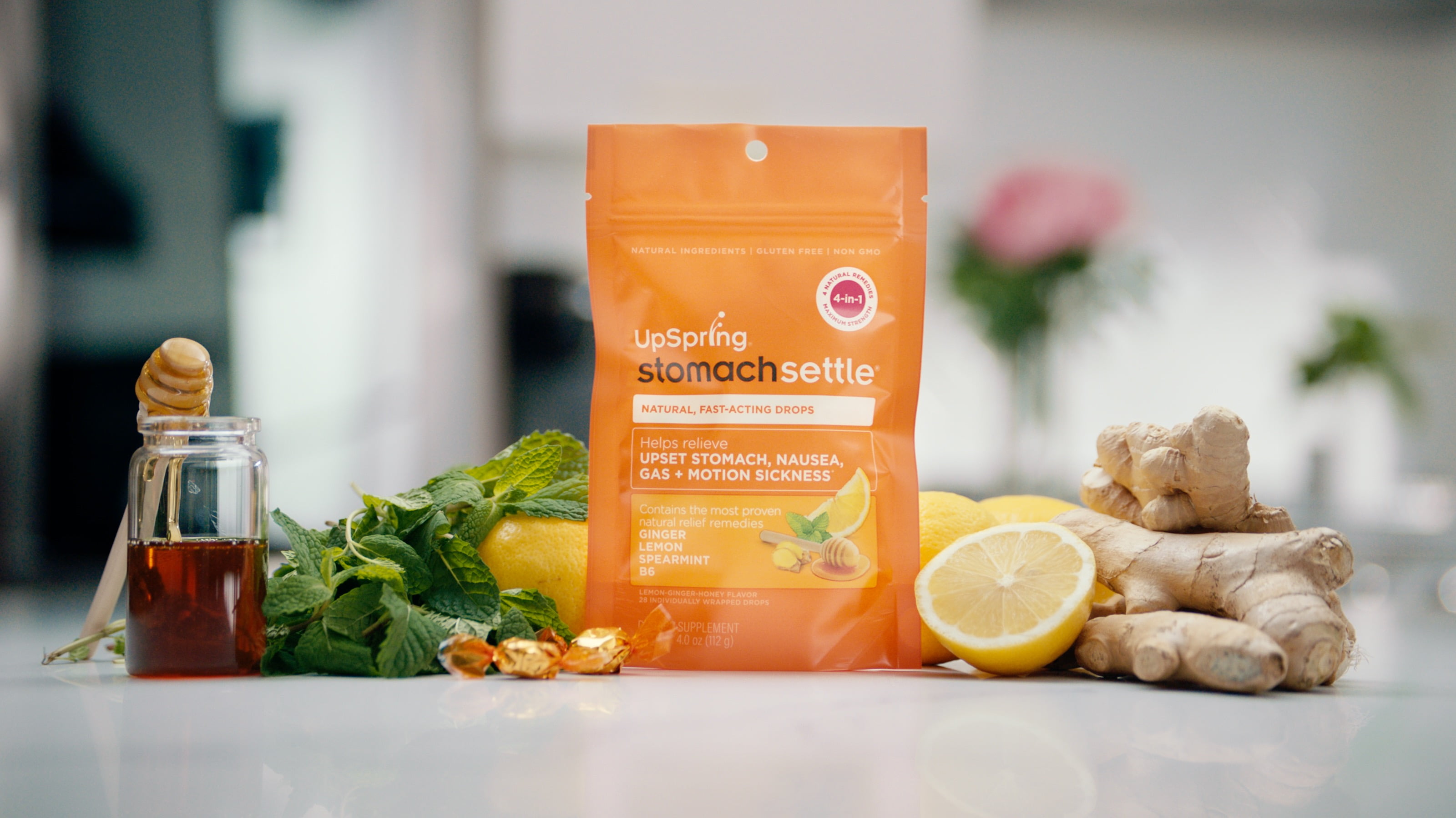 Upspring Stomach Settle Nausea Relief Drops, Lemon Ginger Honey, 28 Ct