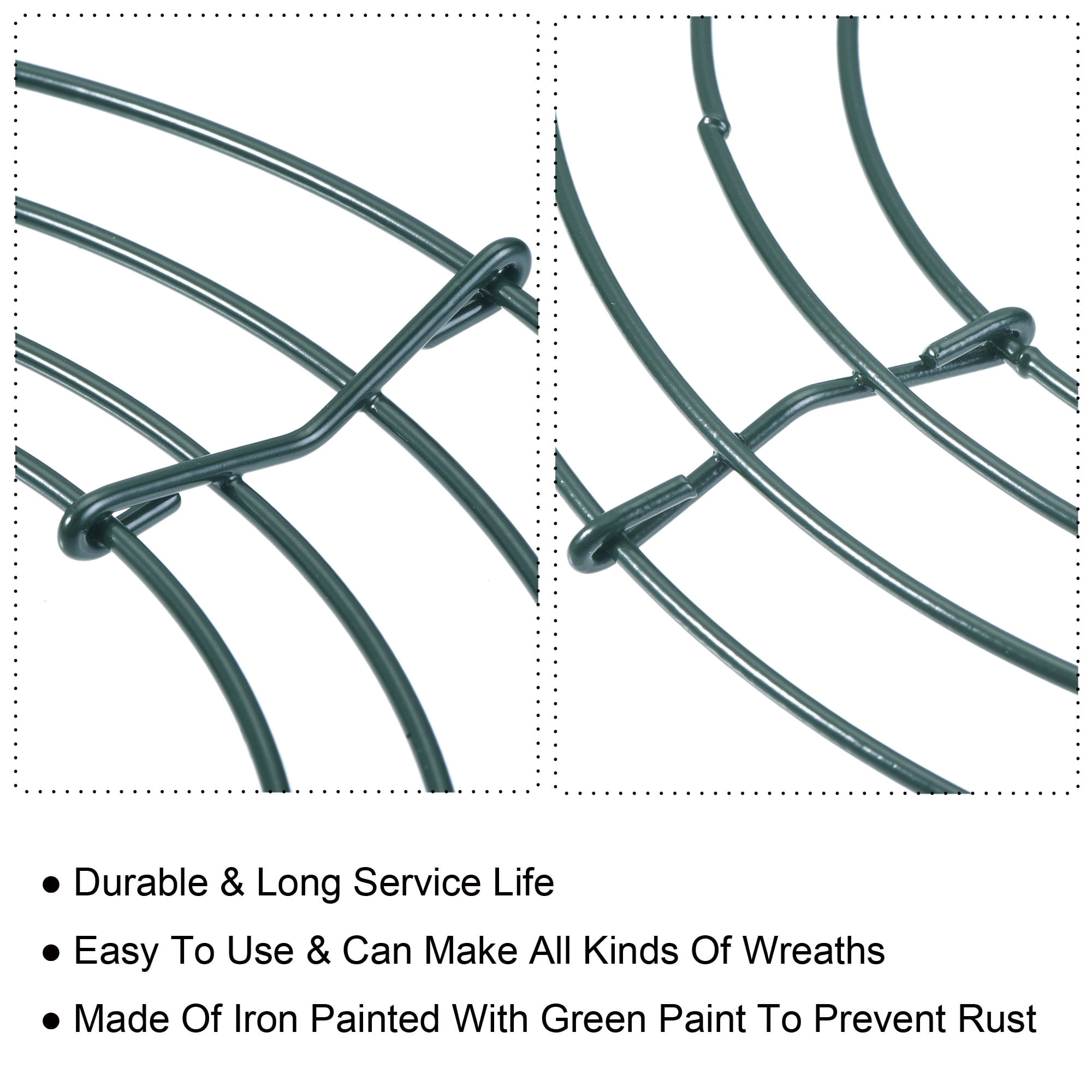 2.3mm iron wire diameter, durable and long service life; Easy to use and can make all kinds of wreaths; Made of iron and painted with green paint to prevent rust