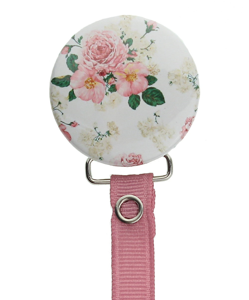 Vintage Flowers Pacifier Clip with Matching Rose Ribbon