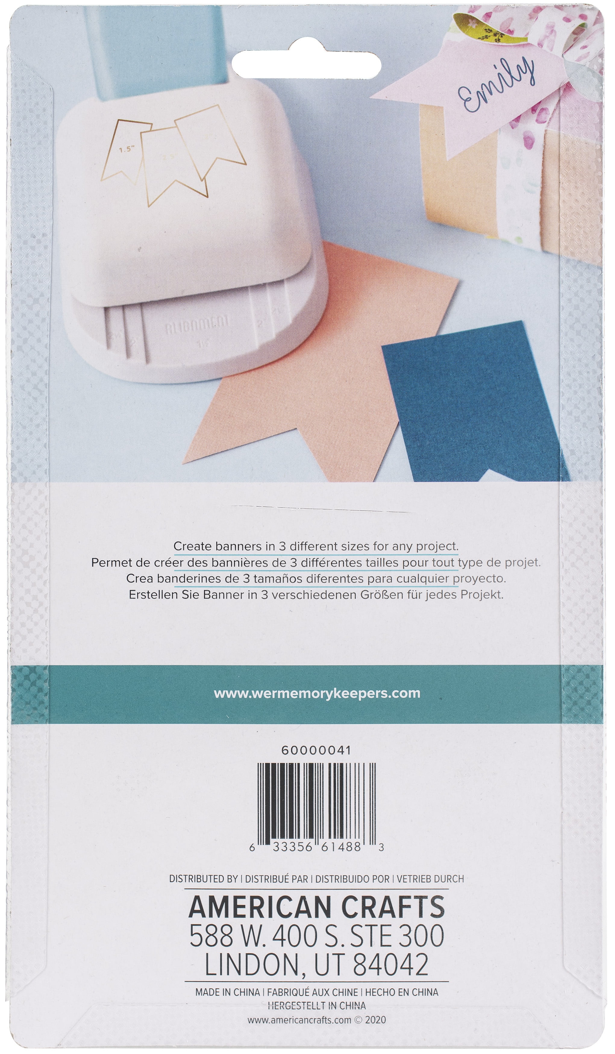 We R Memory Punches let you turn ordinary paper into something extraordinary. Different punches will let you create different shapes, designs, and patterns. 3-In-1 Banner- Creates 3 sizes of banner flags with square corners and chevron bottom. Sizes include 1.5", 2", and 2.5".None