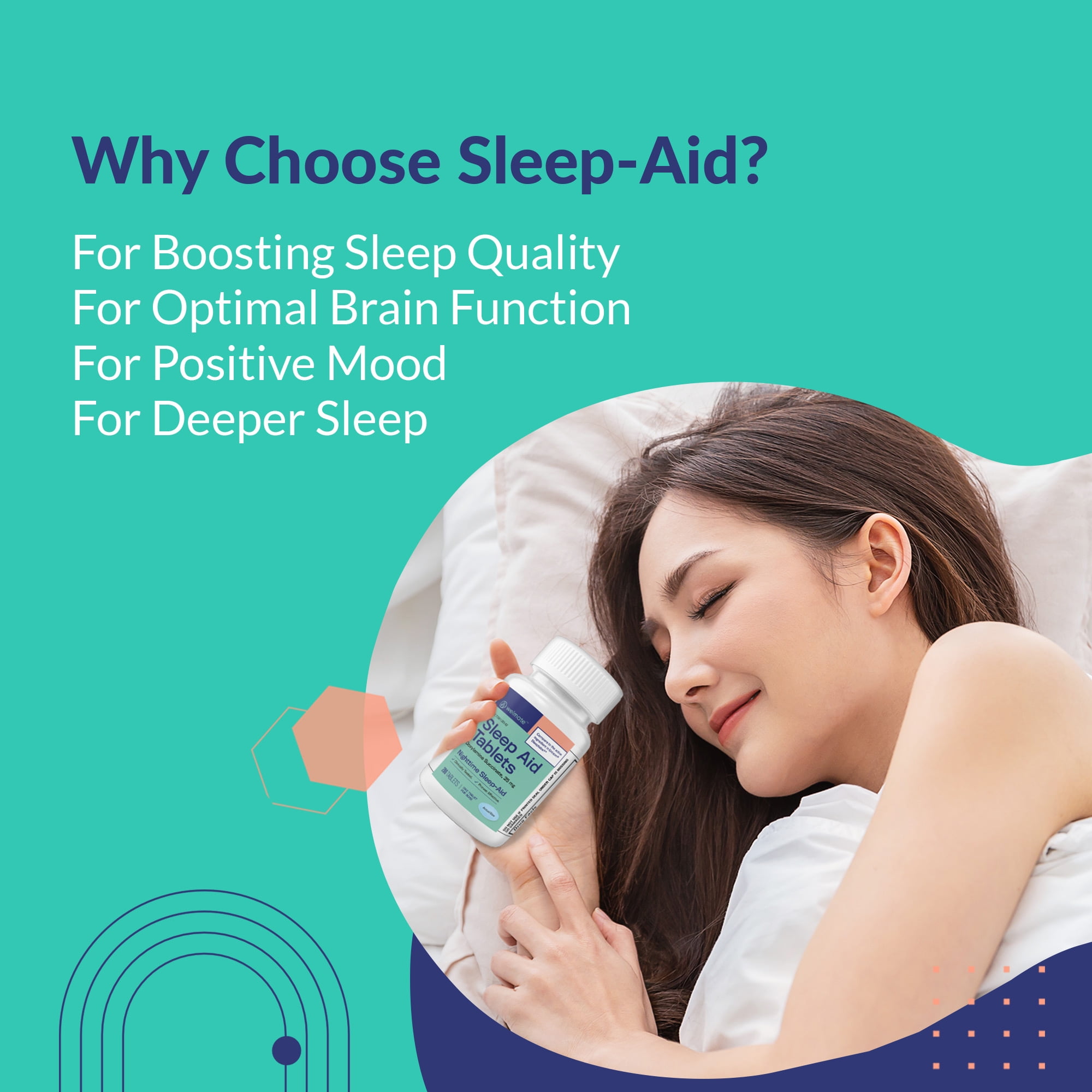 - FOCUS ON SLEEP: With a single one-tablet dose, Welmate Sleep Aid Tablets with doxylamine succinate 25 mg as the active ingredient help reduce difficulty in falling asleep. This nighttime sleep aid contains no pain reliever