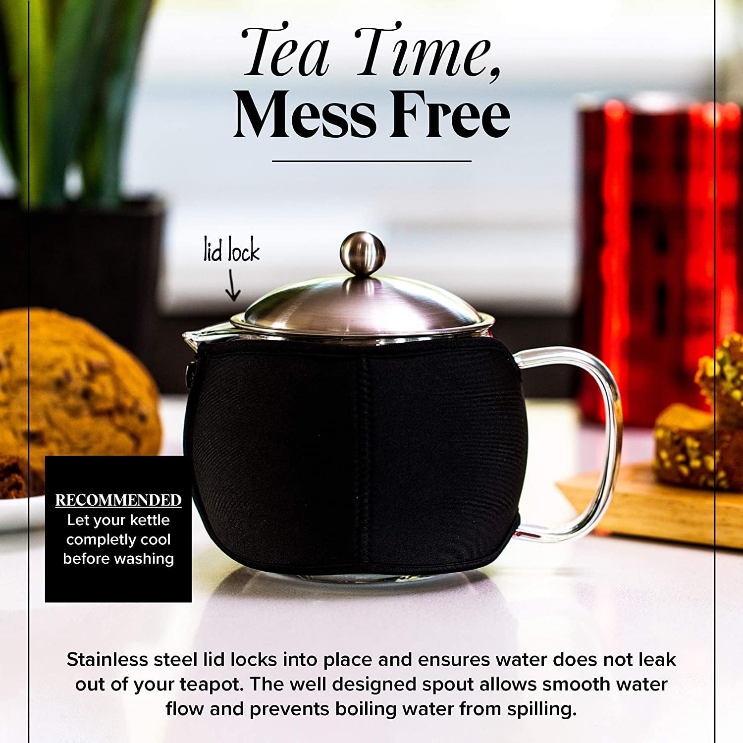 - SPILL-FREE & RUST-PROOF: The stainless steel lid locks into place to ensure water doesn’t leak out of your tea maker. The pot is easy to wipe clean & the removable 18/8 stainless steel mesh infuser is rust-free – allowing you to steep any type of loose tea leaves & brew your tea to any desired strength