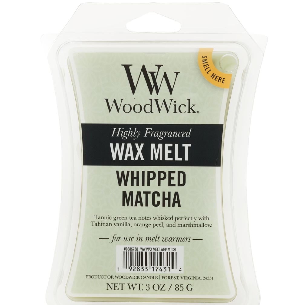 Woodwick Wax Melt 3 Oz. – Whipped Matcha are packaged in the iconic WoodWick Hourglass shape. They are 3 oz. and features easily breakable squares perfect for any standard tart burner. Whipped Matcha is tannic green tea notes whisked perfectly with Tahitian vanilla, orange peel and marshmallow.
