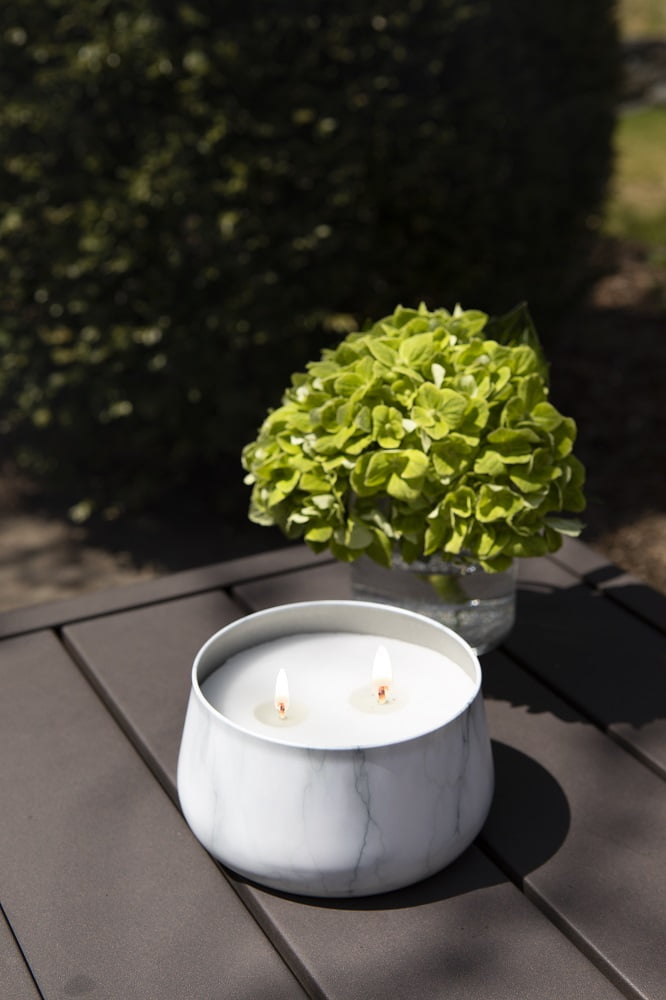 - Linden Tree Blossoms – bring a touch of lush waterlily, breezy wisteria, linden blossom and citronella to your outdoor gatherings.