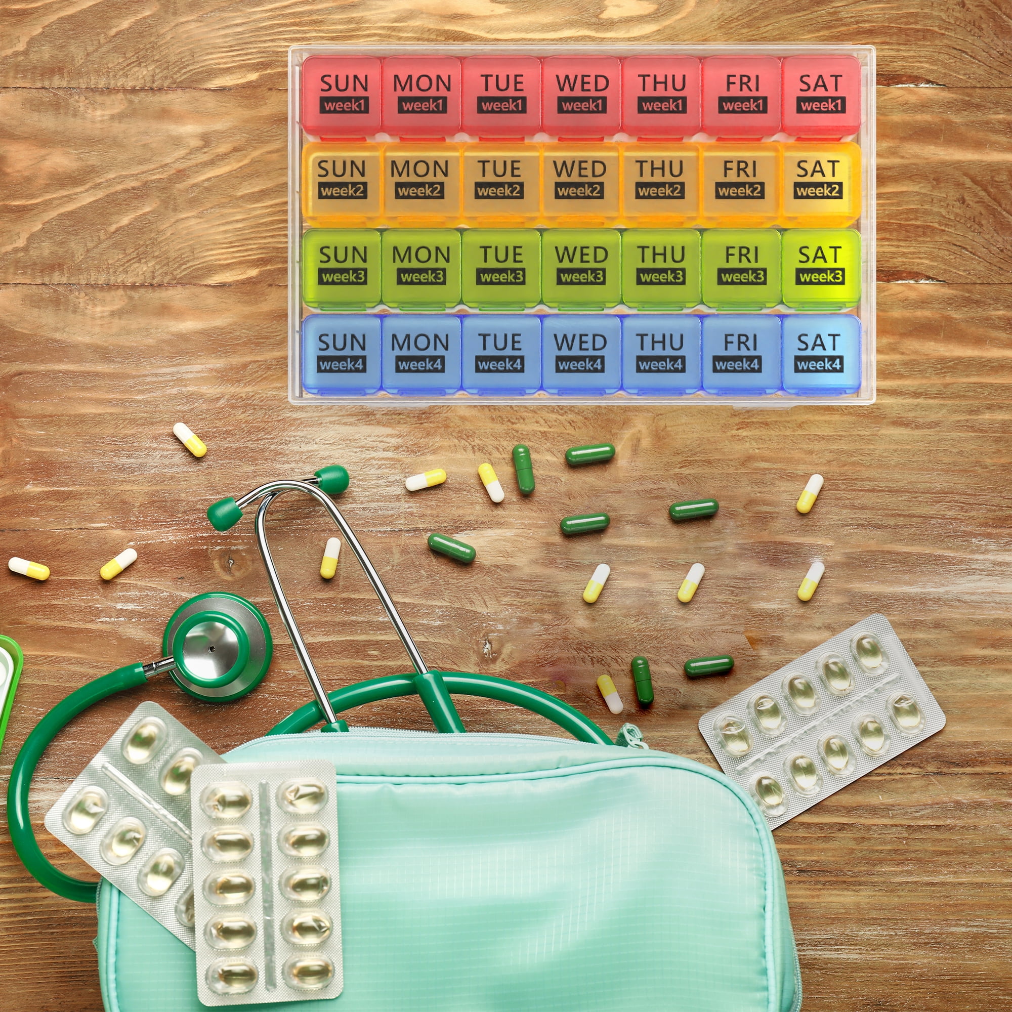 ZzTeck Monthly Pill Organizer 28 Day Pill Box Organizerd by Week, Large 4 Weeks One Month Pill Cases with Dust-Proof Container for Pills/Vitamin/Fish Oil/Supplements
