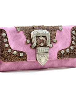 Ritz WB146-PK Western Rhinestone Bling Belt Buckle Trifold Wallet – Pink