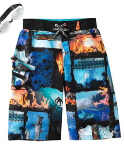 Zero Xposur Boys Surfs Up Board Shorts Graphic Swim Trunks & Goggles Set