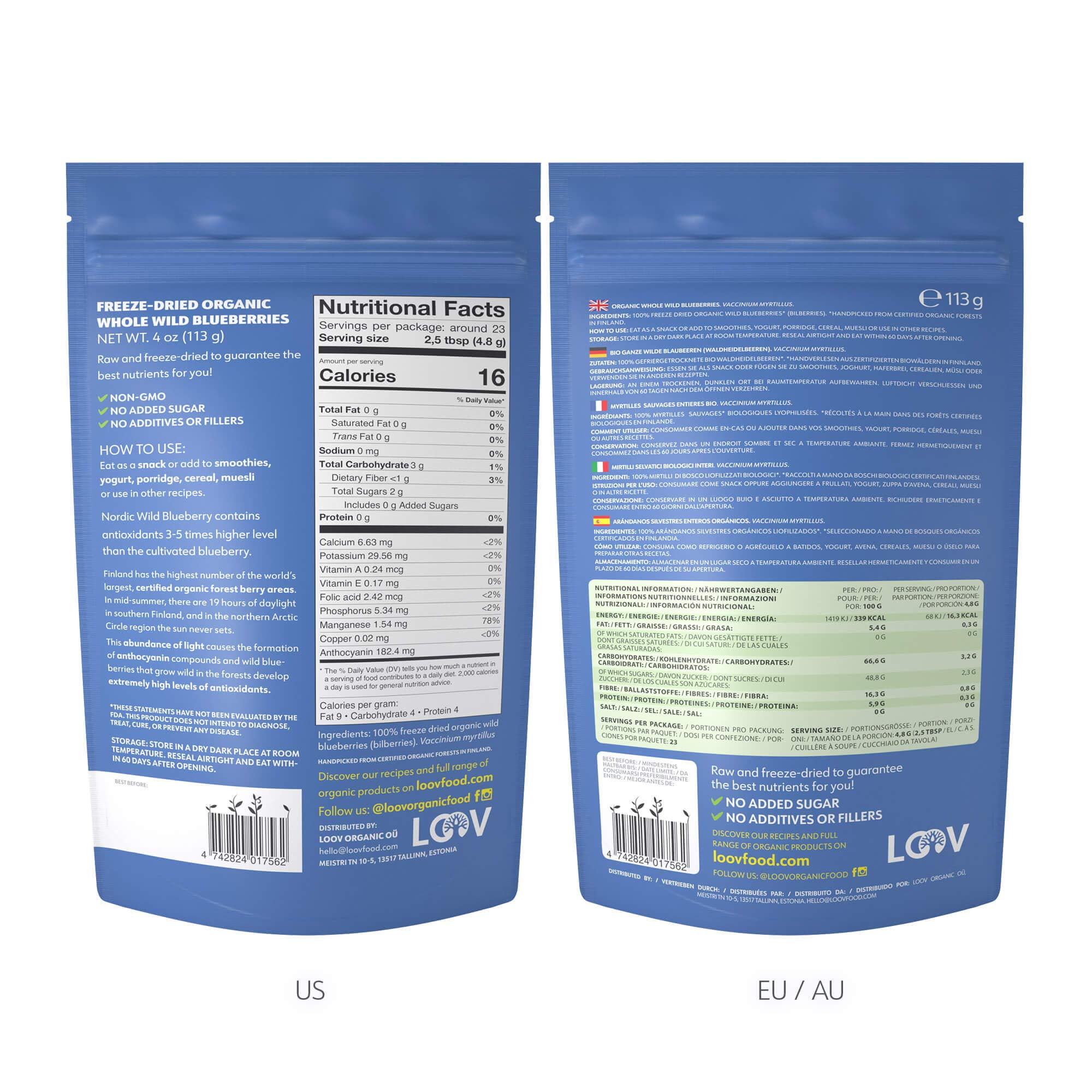 LOOV Wild Organic Freeze Dried Blueberries – 4 Ounces – No Added Sugar