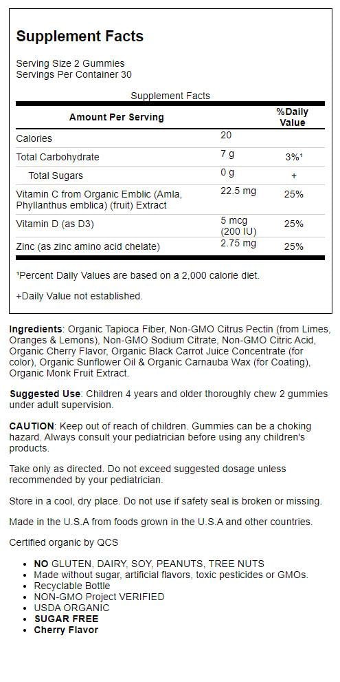 Garden of Life – Kids Immune Support Sugar Free Cherry – 60 Vegetarian Gummies