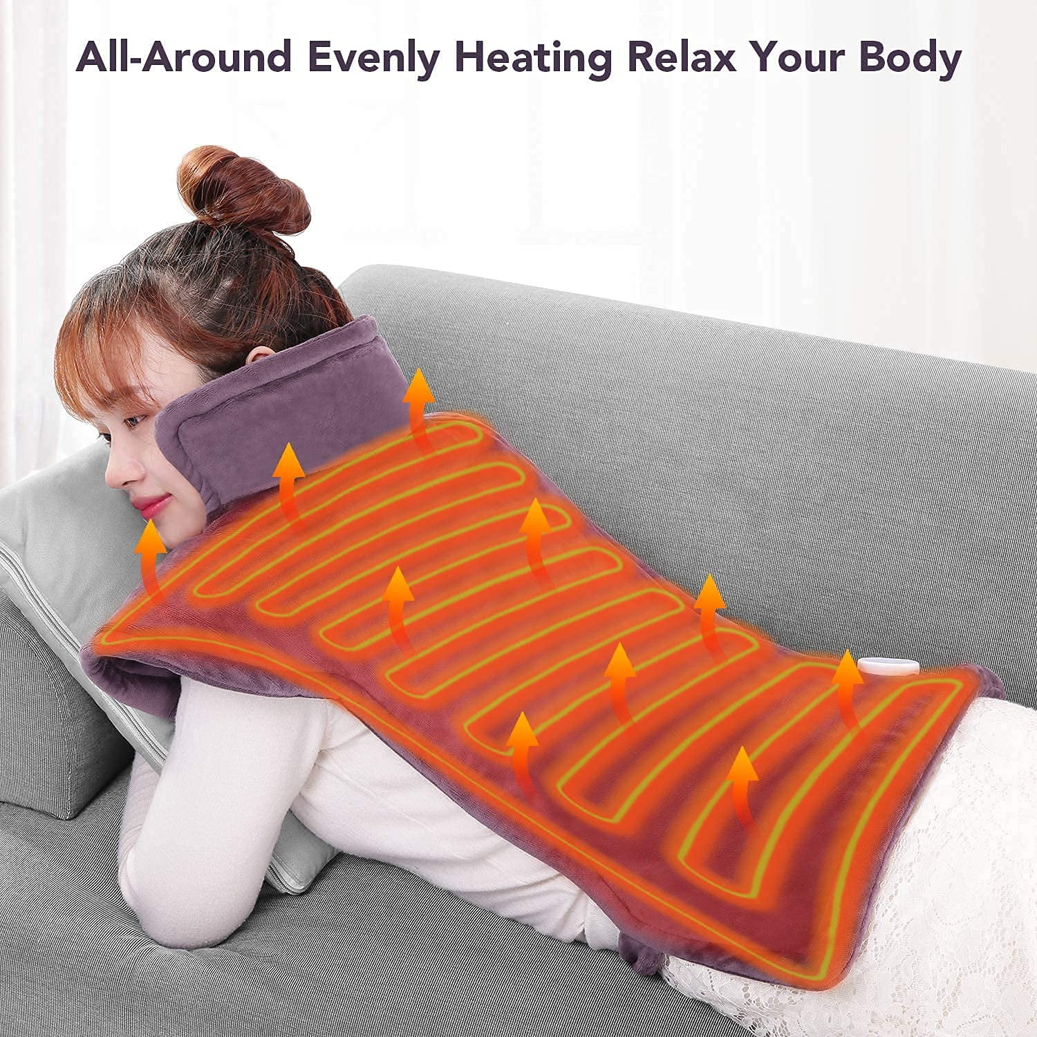 Large Electric Heating Pad for Back and Shoulders, 24”x33” Heat Wrap Vest with 6 Heating Levels, 1.5 Hours Auto Shut Off Available, Purple