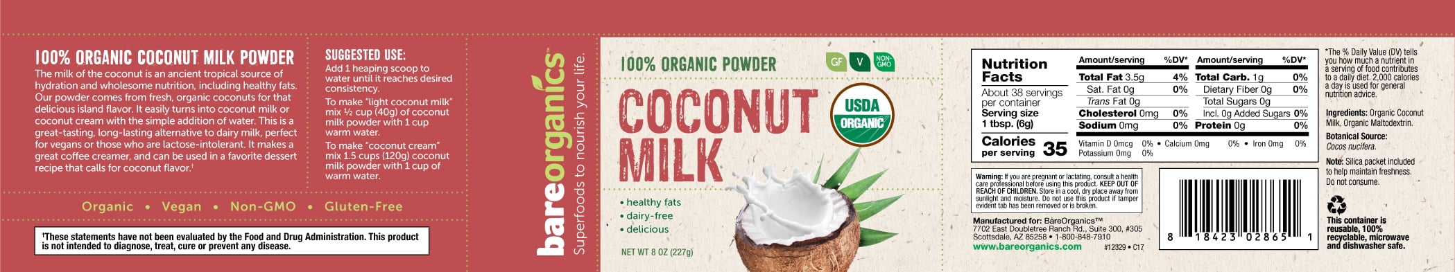 BareOrganics Organic Coconut Milk Powder, 8 Oz
