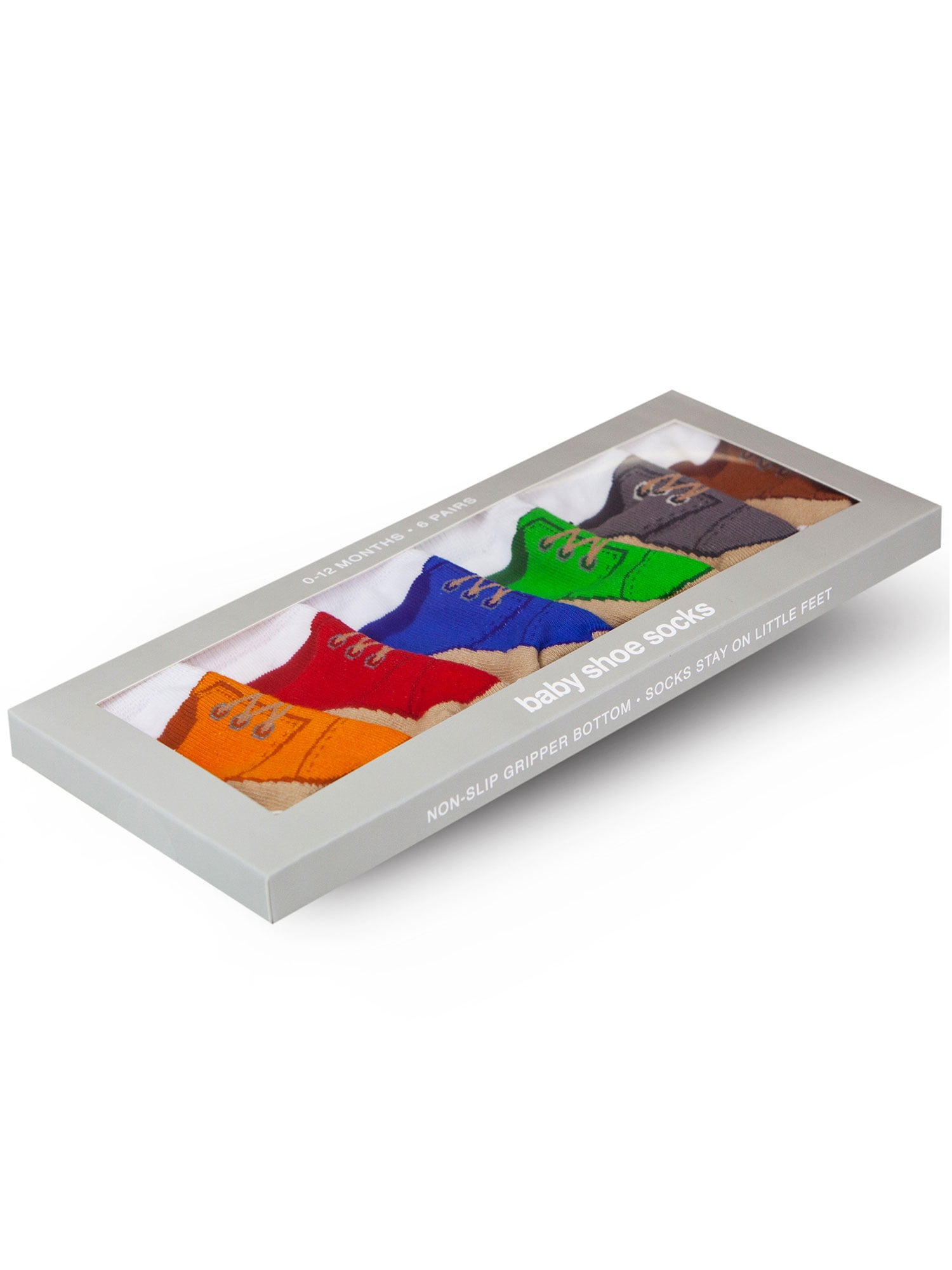 WADDLE Baby Boy Shoe Look A like Cute Chukka Ankle High-Top Dessert Boot Socks No-Slip Grippers Newborn 0-12 Months 6 Pair Pack Holiday Gift Set Stocking Stuffer Soft Sole Crib Shoes Alternative