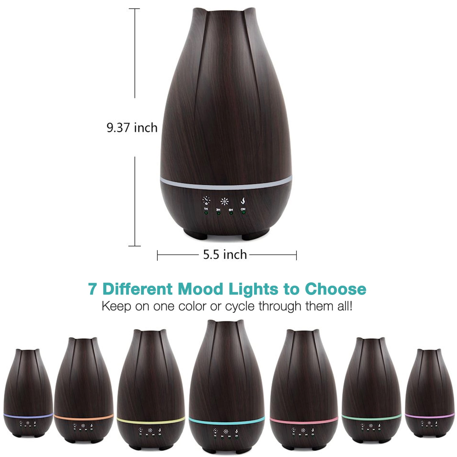 Aromatherapy Diffuser Cool Mist Humidifier – Oil Diffuser for Essential Oils: Ultrasonic Vaporizer Cool Mist with 4 Timers, 2 Misting Modes & 7 LED Light Colors – Large 500ml Capacity (Brown)
