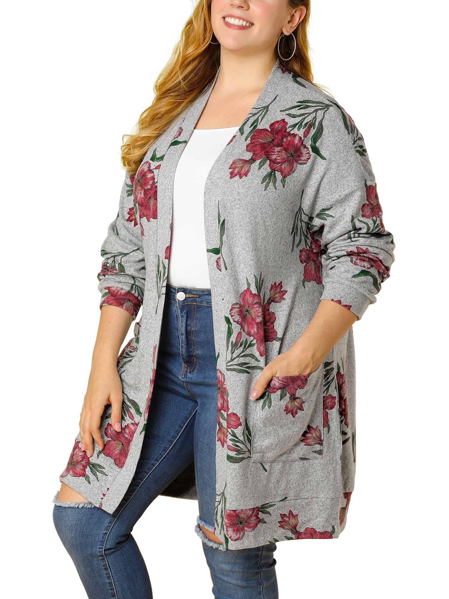 Agnes Orinda Women’s Plus Size Kimono Flower Knit Lightweight Open Front Sweaters Fall Cardigans