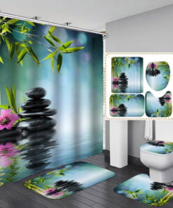 Blue Floral Bath Shower Curtain Set Polyester with 12 Hooks for Bathroom Decor 71’x71′