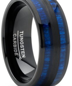Men’s Tungsten Carbide Ring Dome Real Blue Wood Inlay Wedding Band 8MM