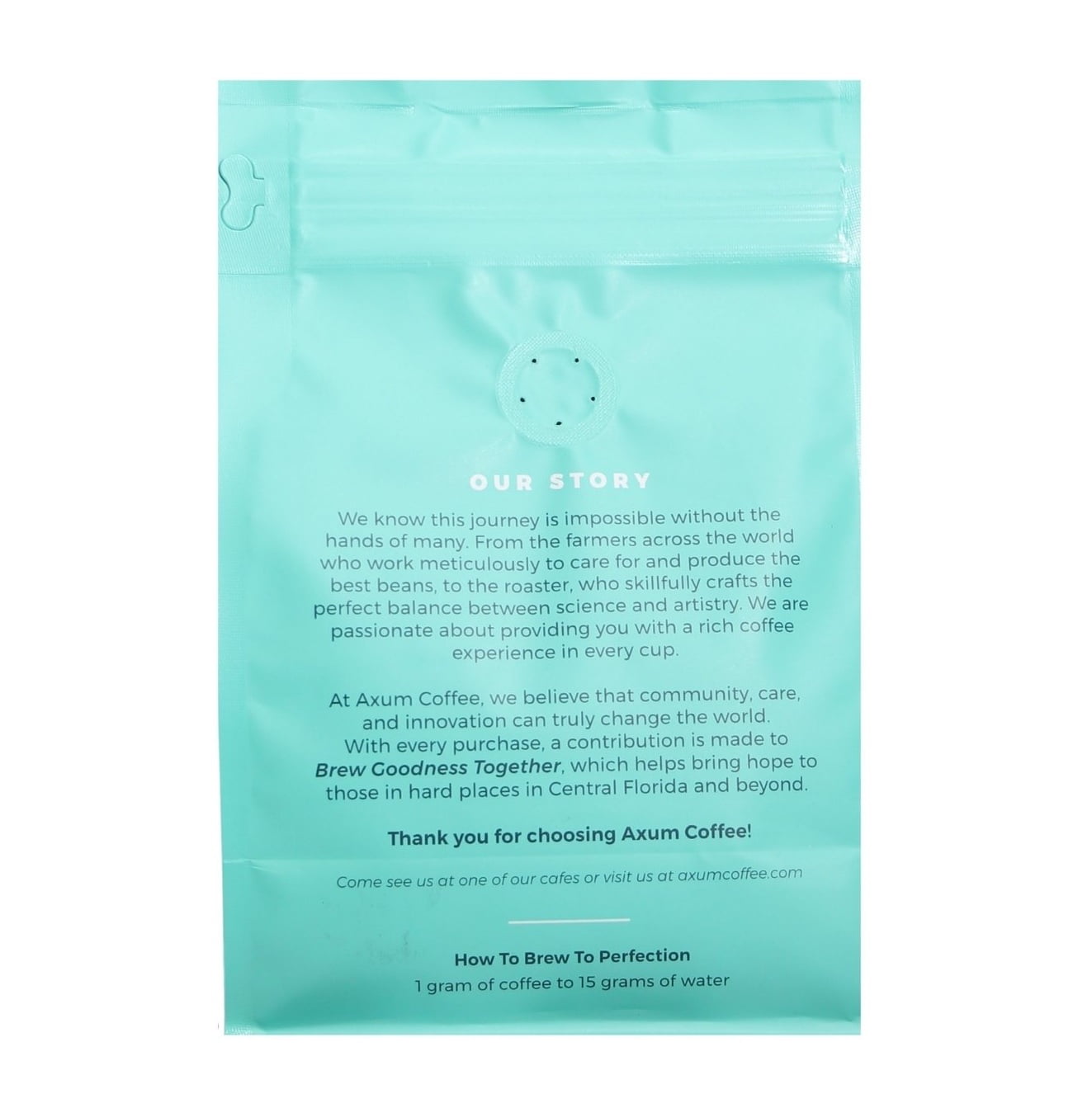 Start your morning off with a cup of delicious Axum Coffee. Made with 100% Arabica beans, sourced from Brazil, this sweet, flavorful, extra body coffee is a deliciously balanced brew bursting with sublime notes of milk chocolate, smooth caramel, and a hint of honey. Brazilian beans have very desired characteristics. They are well known for their body and sweetness, and this coffee is no exception. Roasted at the popular Plant Street Market in Winter Garden, this Medium roast is a well-established Central Florida favorite. The flavor profile of the coffee makes it easy to consistently brew the perfect cup of coffee, giving you a chance to treat yourself day after day.