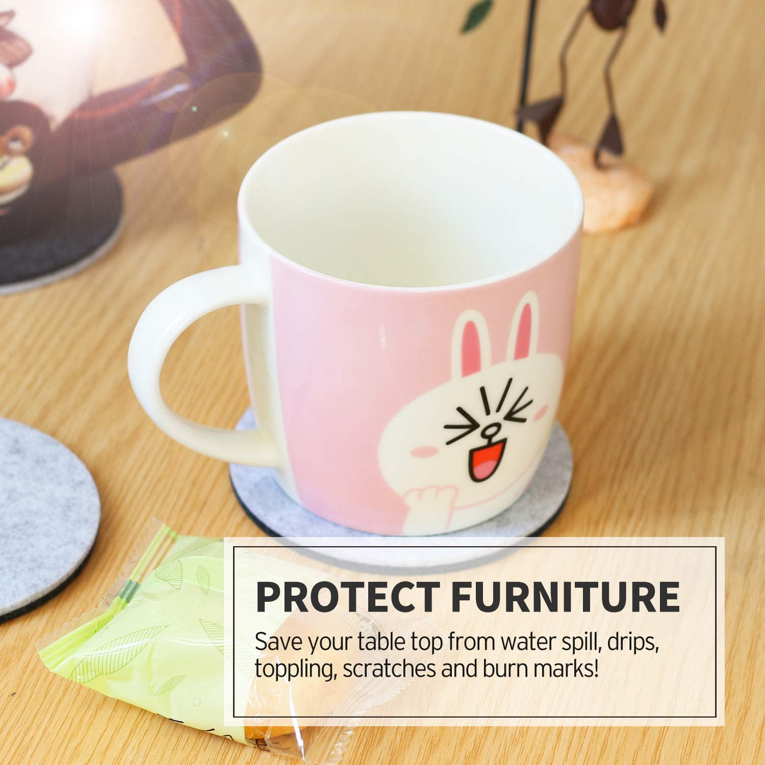 Betus Round Felt Coasters 8pc Bulk Set with Holder – 4′ Diameter & 1/10′ Thick Gray
