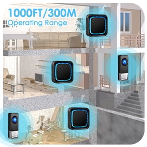 - 【Ultra Long Operating Range】- Wireless doorbell kit operating range up to 1000ft / 300m in open area, ensures you to hear and answer the doorbell in time. You will never miss a visitor even if you are a few rooms away or on another floor.