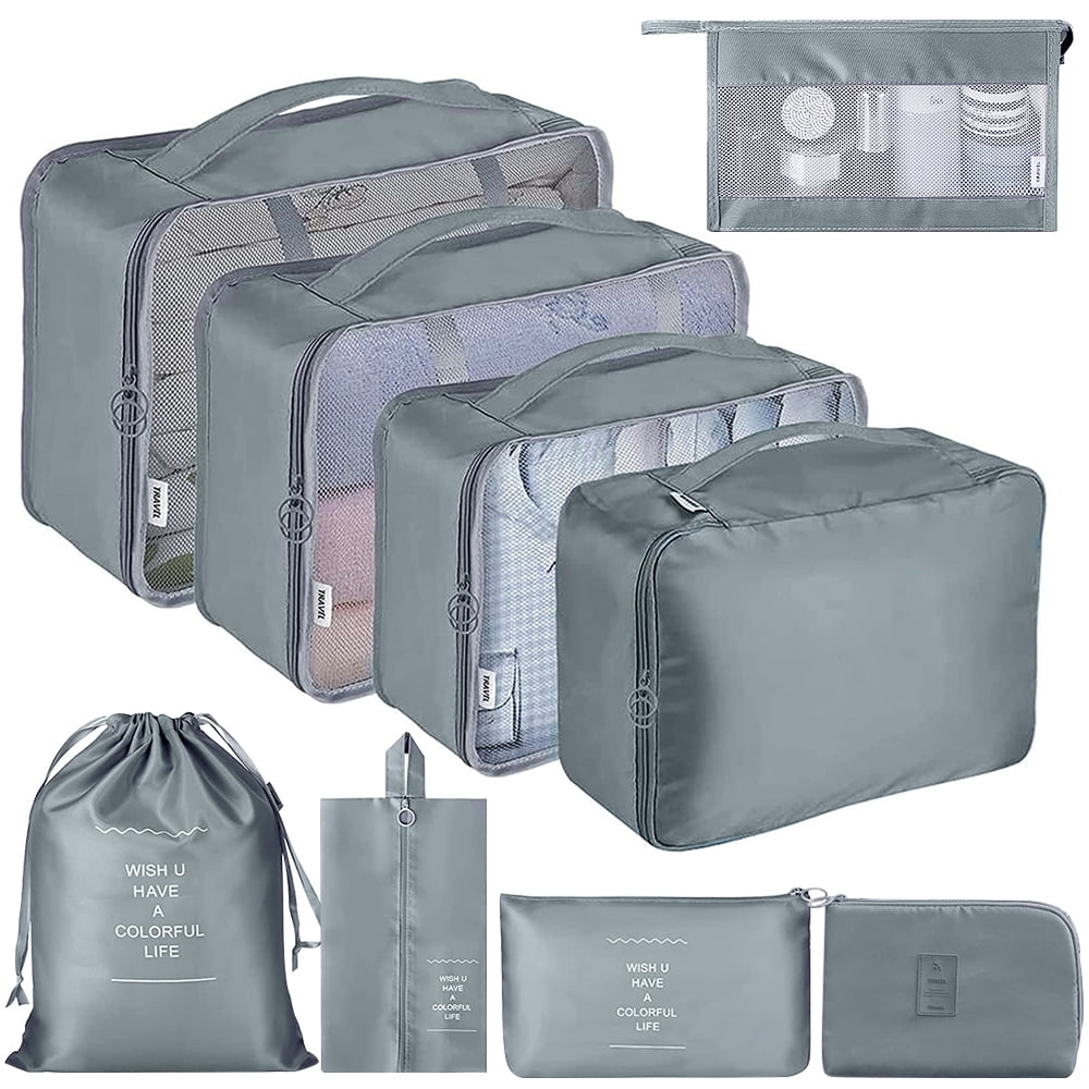 BLUELK Packing Cubes for Travel, 9Pcs Foldable Suitcase Organizer Lightweight Luggage Storage Bag, Gray