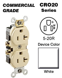 Cooper Wiring WRBR20V Duplex Receptacle 20A 125V 2 Pole, Ivory