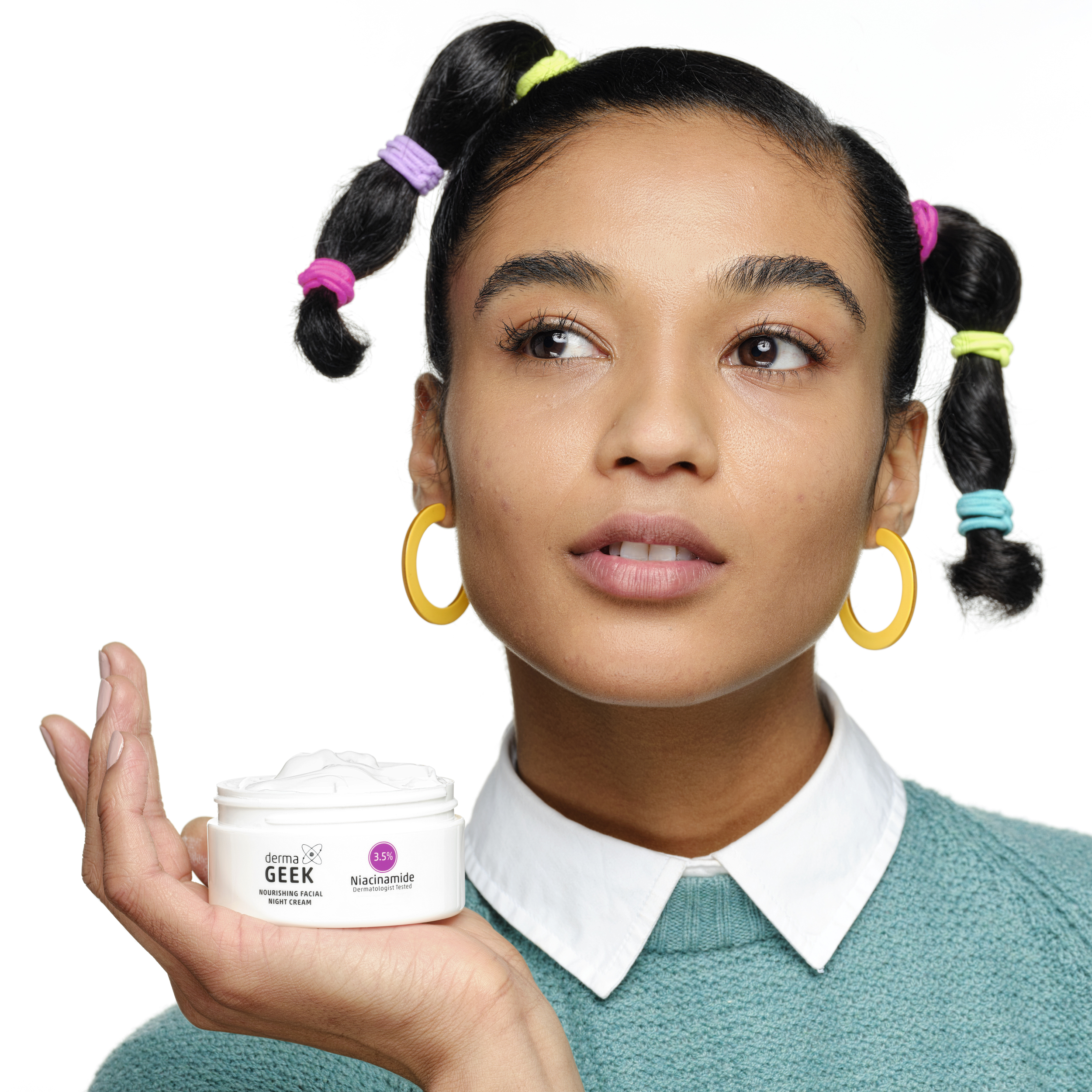 While you’re fast asleep, dermaGEEK’s Nourishing Facial Night Cream is working overtime to give you nourishing hydration for results you can see. This formula is made with 3.5% Niacinamide, an ingredient that 9/10 dermatologists agree works on multiple skin issues to help improve the healthy, youthful look of skin. Better than the ordinary moisturizer. Our science-backed formula provides 24-hour hydration for improved skin resiliency. Made with 0% Fragrances, Parabens, Phthalates, and Synthetic Dyes. Clinically and dermatologist tested, so you can GEEK out to supple, visibly smoother skin. Smooth face cream onto clean face and neck nightly to relieve dry, dull skin and say good morning to healthier looking skin.
