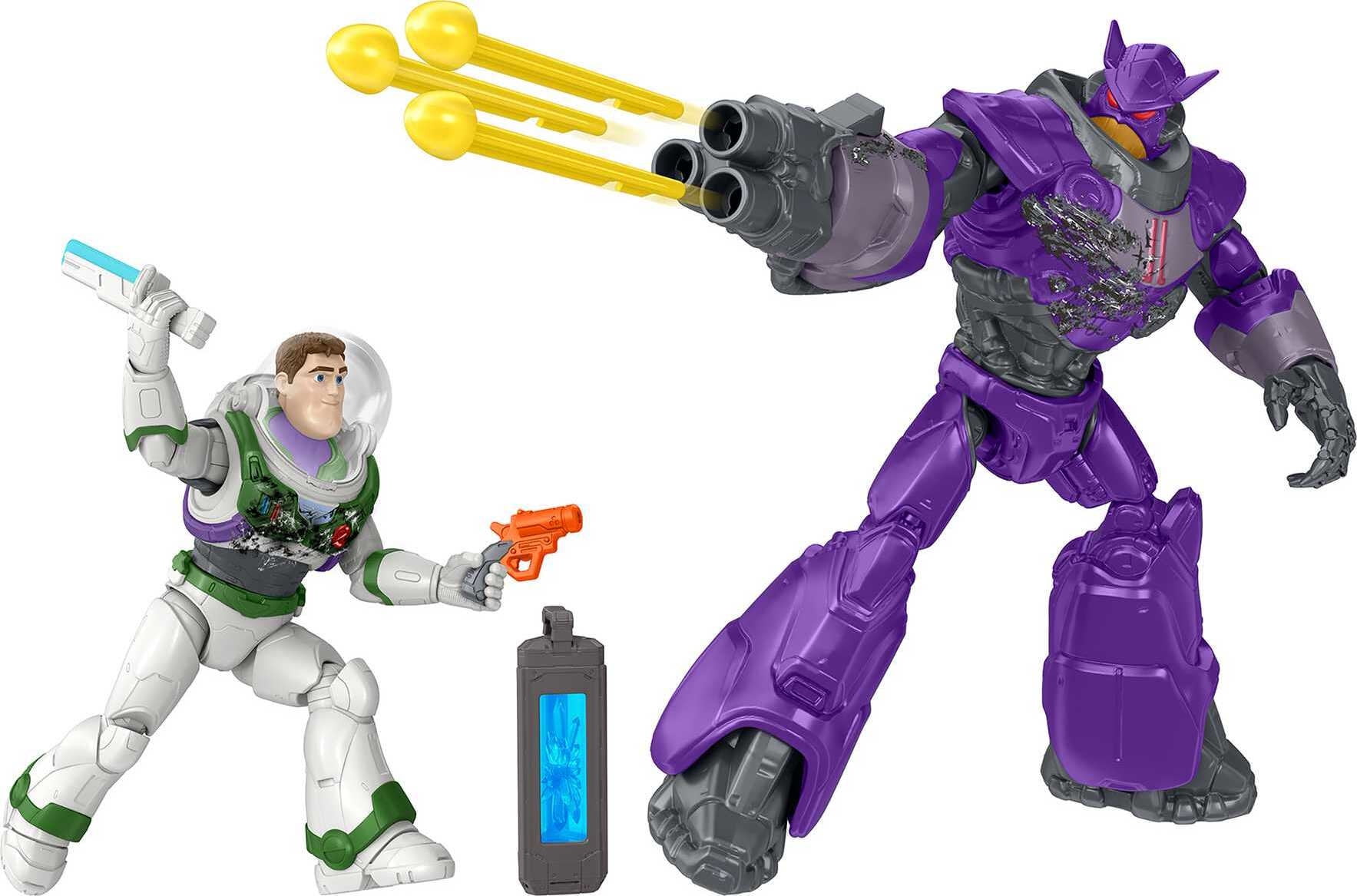 - Relive the excitement of space exploration, conflict and teamwork of Disney and Pixar’s Lightyear, with these Buzz Lightyear and Zurg action figures, complete with battle-ready accessories