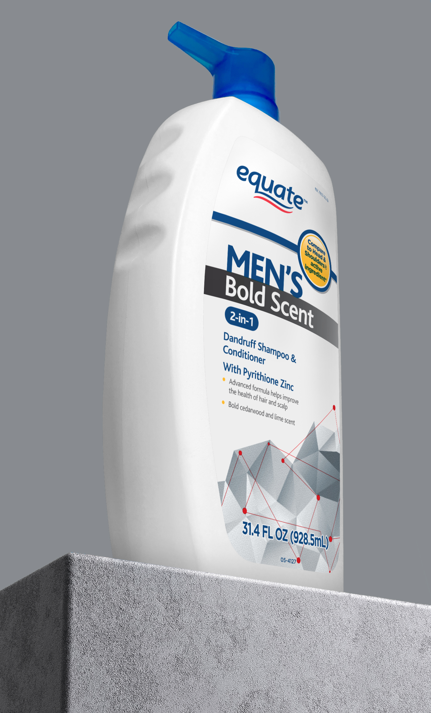 Equate Beauty 2 in1 Dandruff Shampoo and Conditioner with Pyrithione Zinc OS Sport 31.4 oz. Advanced formula helps improve the health of hair and scalp. With a scent of Bold Cedarwood and Lime. Helps prevent recurrence of flaking associated with dandruff and provides excellent dandruff relief. Shake well, wet hair, massage onto scalp, rinse and repeat if desired. For best results use at least twice a week or as directed by a doctor. For maximum dandruff control, use every time you shampoo.