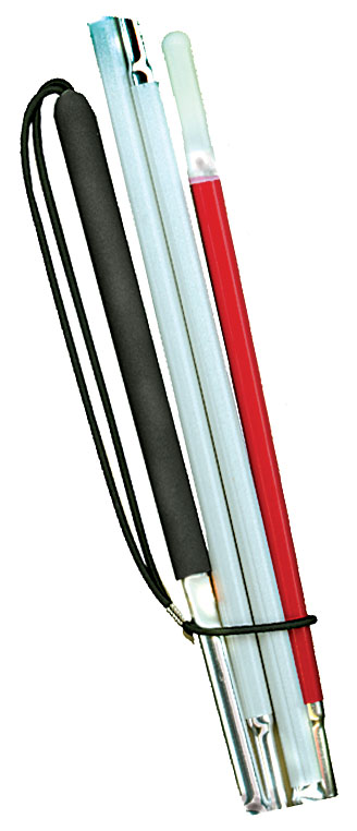 Rubber slim grip with elastic wrist loop. Double elastic tension cord. White reflective tape on upper sections, red reflective tape on lower sections. Light-weight. Precise TMG joints eliminates wobble and sticking. Made in USA.Products for Independent Living