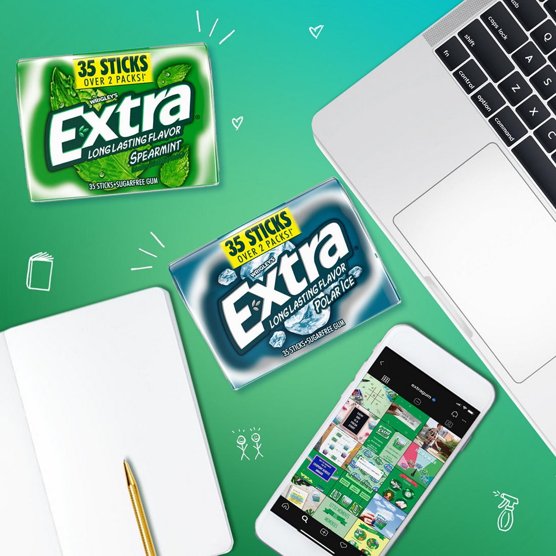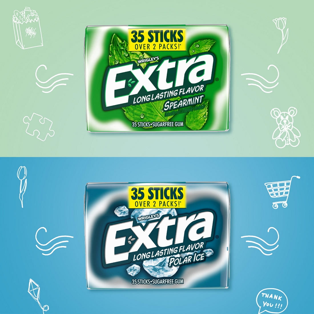 Extra Peppermint and Spearmint Sugar Free Chewing Gum, 35 Ct. Extra knows: When you give Extra, you get extra. With a total of 280 sticks in this sugar-free mint gum assortment pk., you have unlimited ways to share the joy of your favorite chewing gum. This gum pack features eight pk. of everyone’s favorite Extra mint gum flavors with four Peppermint gum and four Spearmint gum packs. Each pack includes 35 individually wrapped sticks of bold mint gum flavor, making it easy to enjoy fresh breath on the go. Extra sugar-free Gum gives you a long-lasting flavor for any occasion. Give a piece to your co-pilot on your next road trip, stock up with this bulk gum pack for the office, or hand it out to your family when they need something fresh to get their day started. Fill the pantry with bulk gum and never miss a moment to give Extra. Stock up on chewing gum for home or the office so you always have breath-freshening flavor on hand. Keep a pack of Extra sugar-free gum at your desk for a delicious way to help you stay focused.