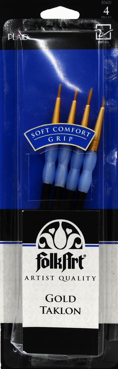 Plaid FolkArt 50600E Paintbrush Set, Soft Grip Detail Brush Set, 4 Piece: