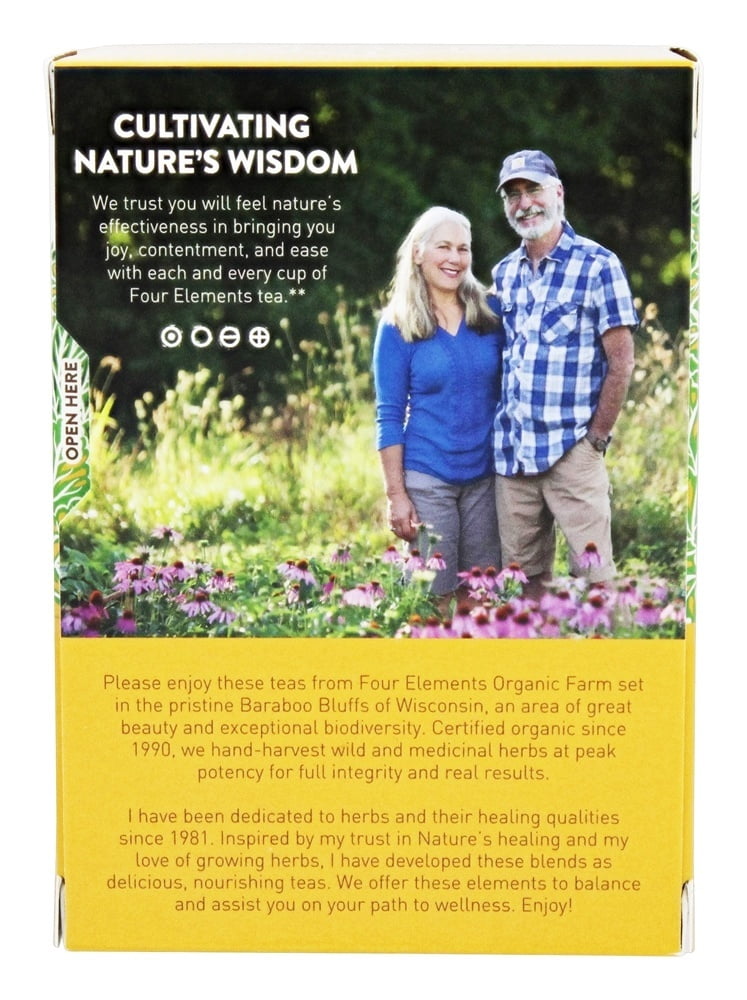 Four Elements Herbals – Organic Herbal Tea Triple Lemon – 16 Tea Bags (1.2 oz./35g) Four Elements Herbals Organic Herbal Tea Tea Triple Lemon is hand harvested in Wisconsin’s pristine Baraboo Bluffs. This is the perfect beverage for a restorative pause. Three lemon herbs, lemon balm, lemon verbena, lemongrass are blended with oatstraw for a delicious, nourishing and calming experience.Four Elements Herbals – Organic Herbal Tea Triple Lemon – 16 Tea Bags (1.2 oz./35g) Four Elements Herbals Organic Herbal Tea Tea Triple Lemon is hand harvested in Wisconsin’s pristine Baraboo Bluffs. This is the perfect beverage for a restorative pause. Three lemon herbs, lemon balm, lemon verbena, lemongrass are blended with oatstraw for a delicious, nourishing and calming experience. Enjoy, Nourish, Calm Certified Organic Hand harvested in Wisconsin Four Elements: