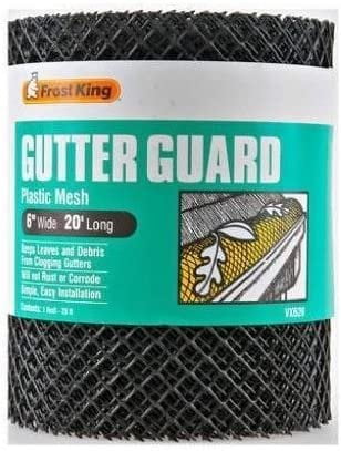 - Frost King 6" x 20′ Gutter Guard Rolls Plastic Mesh Gutter Guard, Prevents Leaves & Debris From Blocking Gutter, Easily Unrolled & Cut Or Shaped With Ordinary Scissors, Will Not Rust Or Corrode. Measures 6 inches by 20 feet.