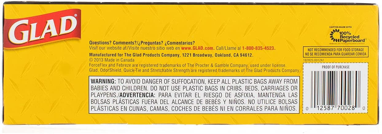 GLAD Quick-Tie Bags have strong and dependable easy-tie flaps. No need for inconvenient twist-ties anymore! With GLAD Quick-Tie closure you can close the bag by cross-tying the flaps. Quick-Tie bags are also easy to lift and carry so you can transport even the fullest bag with ease.Glad Quick Tie Lawn And Leaf Trash Bags 12CT Pack of 24