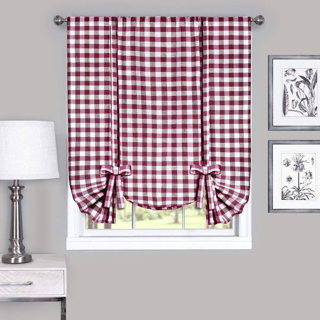 GoodGram Buffalo Check Plaid Gingham Custom Fit Window Curtain Tie Up Shade – Burgundy