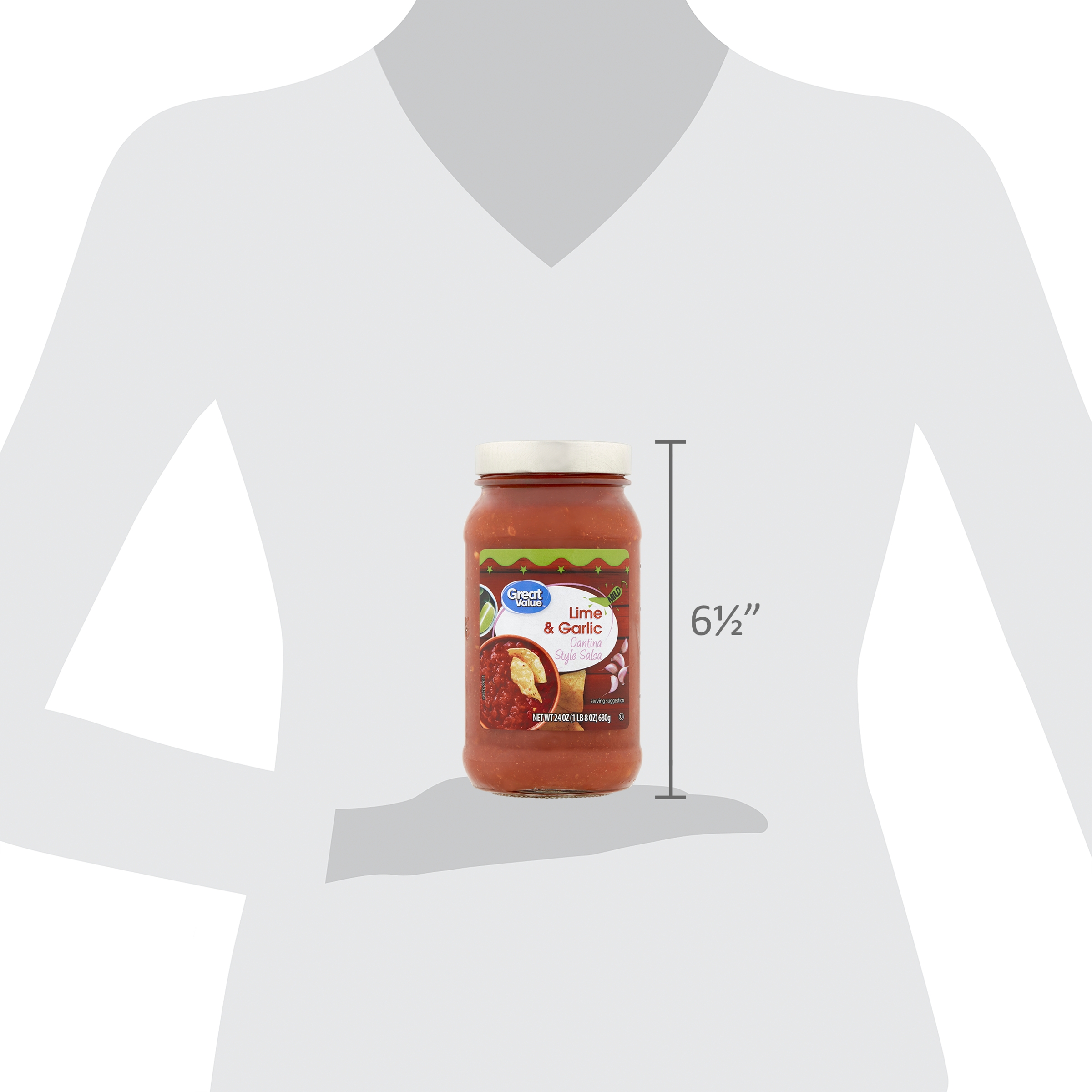 Bring the fiesta to your kitchen with Great Value Mild Lime & Garlic Cantina Style Salsa. When entertaining friends, it doesn’t get much better than chips and dip. With the zesty kick of lime and garlic, it pairs perfectly with tortilla chips, pita chips, corn chips, nachos and more. Add it to mashed avocado for a perfect guacamole. The tangy, tart flavor of the lime with aromatic garlic make it a snack anyone would enjoy. Our lime and garlic salsa is a sensational addition to meat, seafood, vegetables, and stir-fry. The authentic blend of Southwestern flavors can transform any recipe into a Mexican-inspired feast. Being gluten-free and made with all-natural ingredients means it’s perfect for families. It comes in a wide mouth, easy pour bottle with an easy on/off cap that keeps it fresh between uses. No matter the occasion, Great Value Mild Lime & Garlic Cantina Style Salsa will always make a splash.