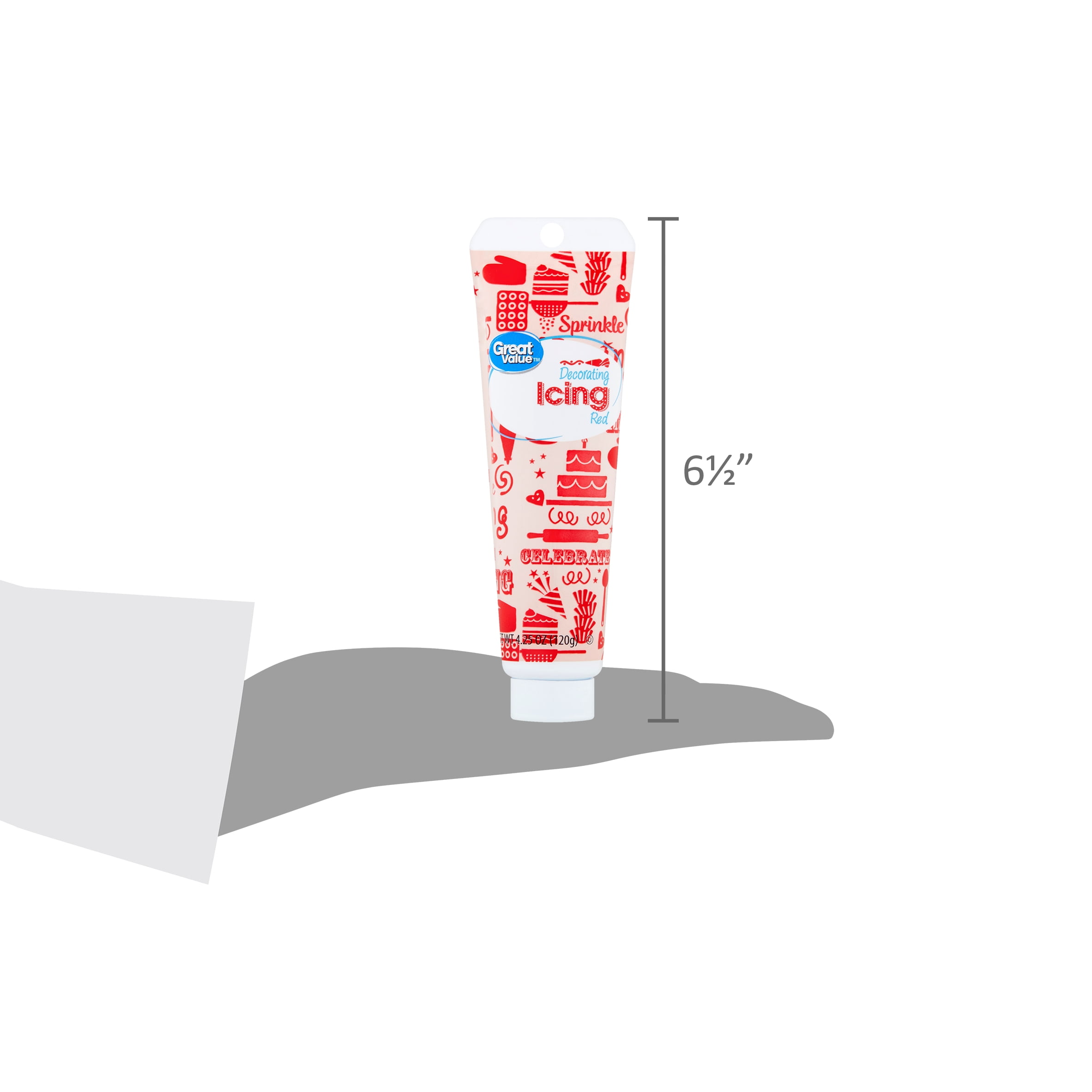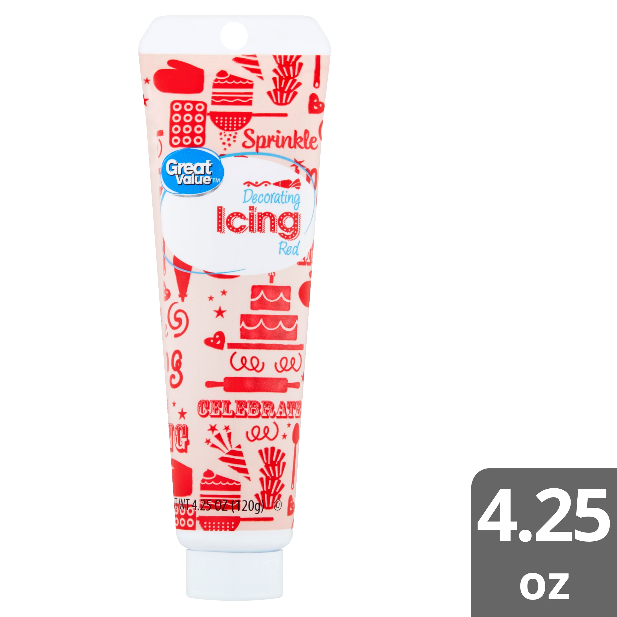 Transform boring, bland desserts into edible art with Great Value Red Decorating Icing. This red icing is your secret weapon to take your sweet treats to the next level. Create cupcakes in honor of your favorite sports team, serve up seasonal goodies, or make a heart-shaped cake for your sweetheart. At only 25 calories per teaspoon with no saturated or trans fat, you can afford to add a little more. Complete your culinary creations with Great Value Red Decorating Icing.