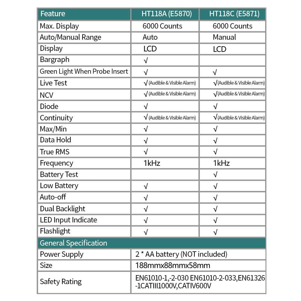 HABOTEST HT118C Digital Multimeter Manual Multi-meter 6000 Counts True RMS Measuring AC/DC Voltage Current Resistance Capacitance Frequency Temperature NCV Test Diode Battery Test with LCD Backlight