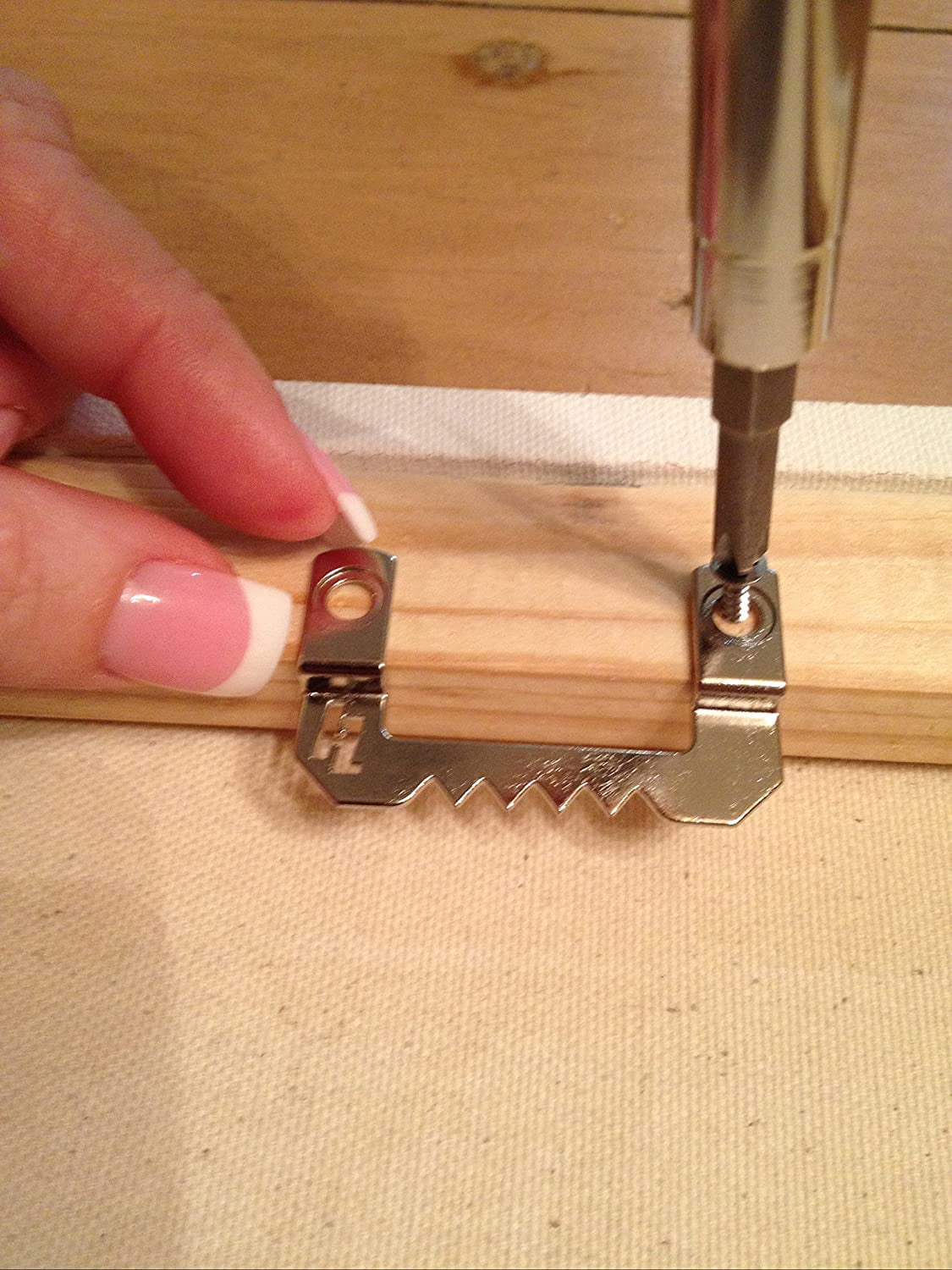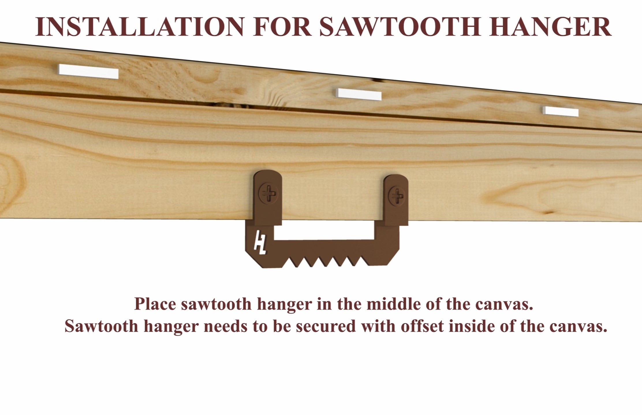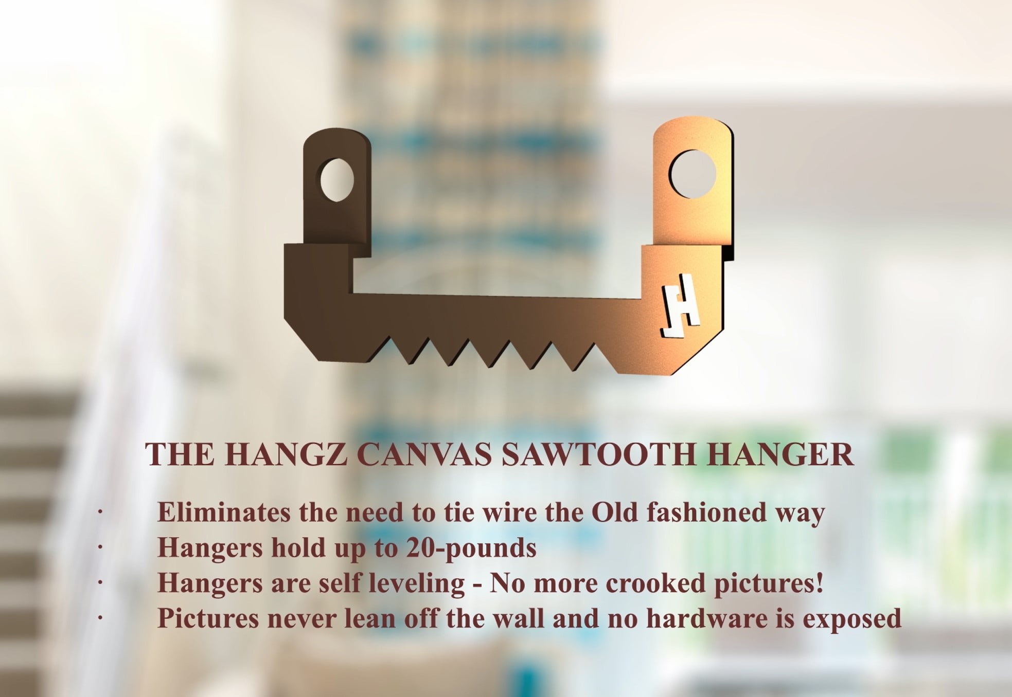 HangZ™ 20lb. (50-Pack) Canvas Flat Mount Sawtooth Hanger. These hangers are designed for canvas & open back frames. The HangZ™ sawtooth hangers are hidden so the pictures never lean off the wall with no exposed hardware. They are also self leveling so you can be sure your wall decor will hang straight.Keep canvas pictures and mirrors flat on the wall no more exposed hooks or hardware.Zinc alloy construction making HangZ the world strongest picture hooks.Antique brass finish for decorative look.Only saw tooth hanger designed to be used with canvas and open back frames.Hangers are self-leveling, no more crooked pictures