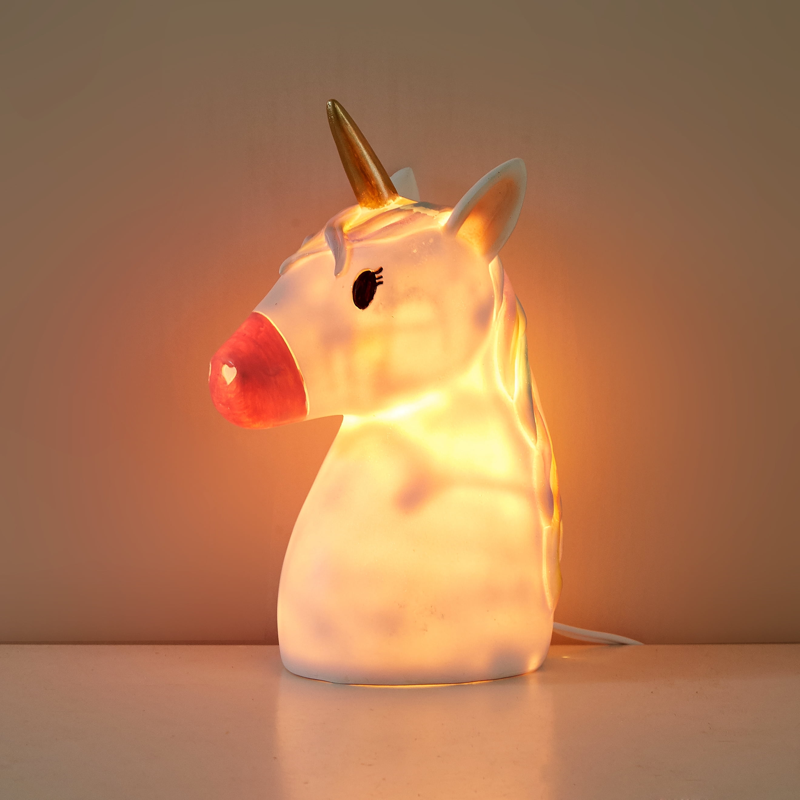 Add some light to your child’s bedroom nightstand with this adorable Unicorn Figural Shaped Kids Lighting Table Lamp. This Unicorn Figural Shaped Kids Lighting Table Lamp is a perfect decorative accent to your child’s bedroom or playroom. This Unicorn Figural Shaped Kids Lighting Table Lamp features a Unicorn design with lots of fun colors. For easy care this table lamp Is wipe clean only.