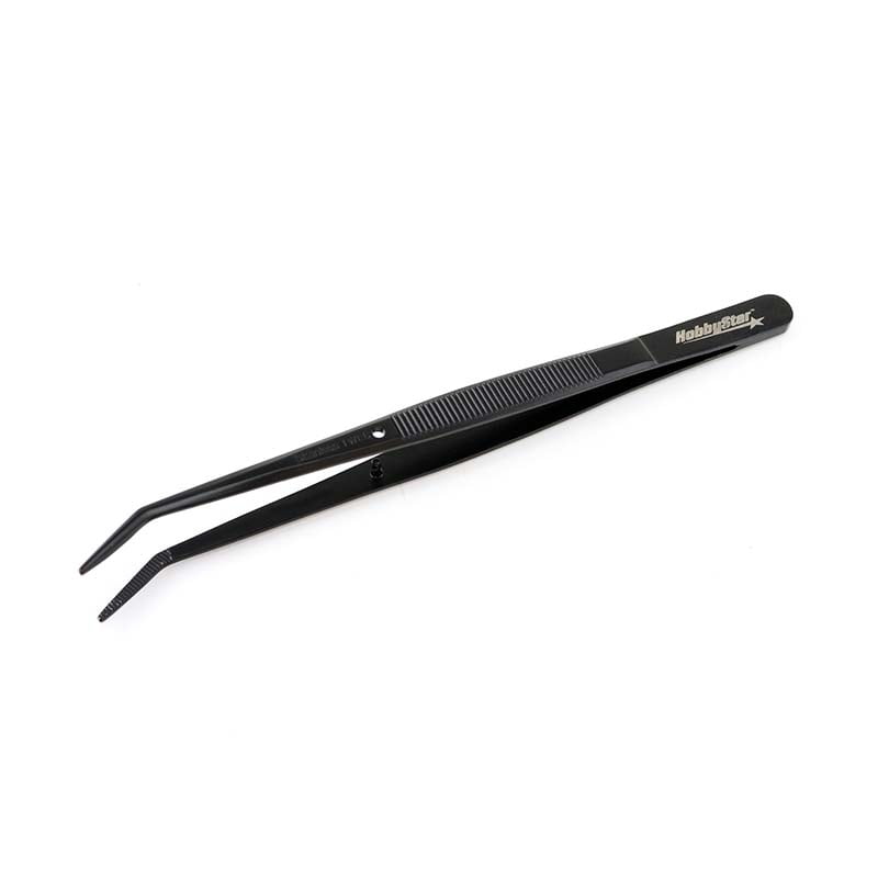 Precision tweezers feature an angled head for versatility and a durable construction with knurling on the tips for ease of use. Measure 6" in length.