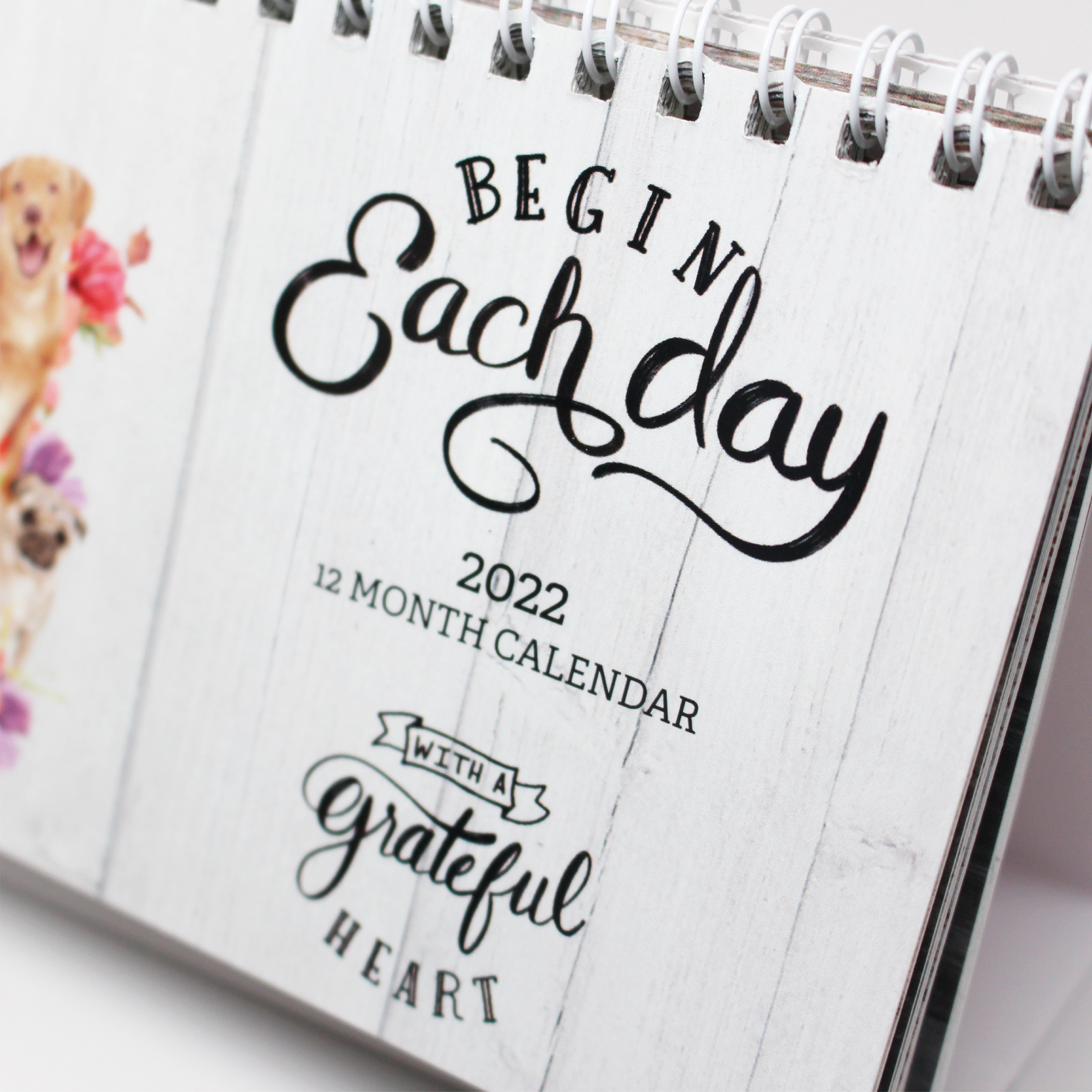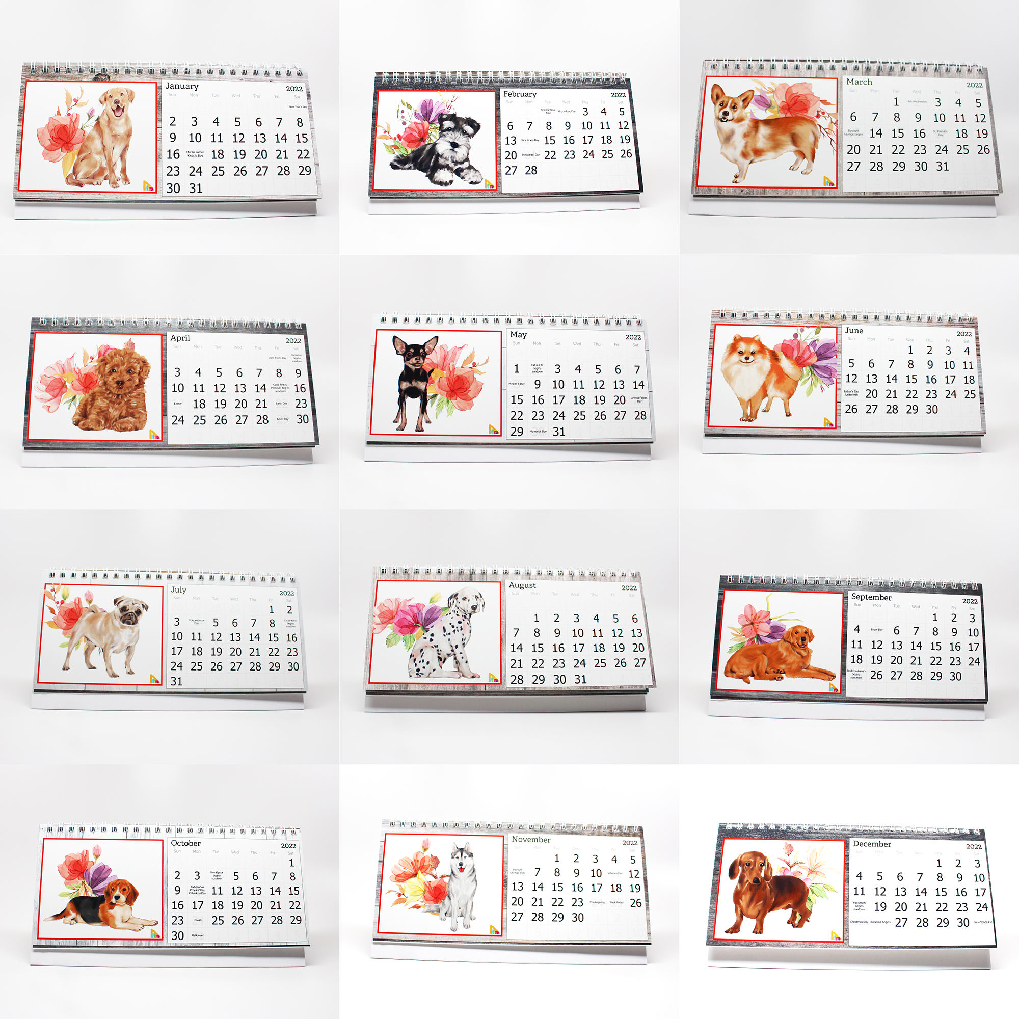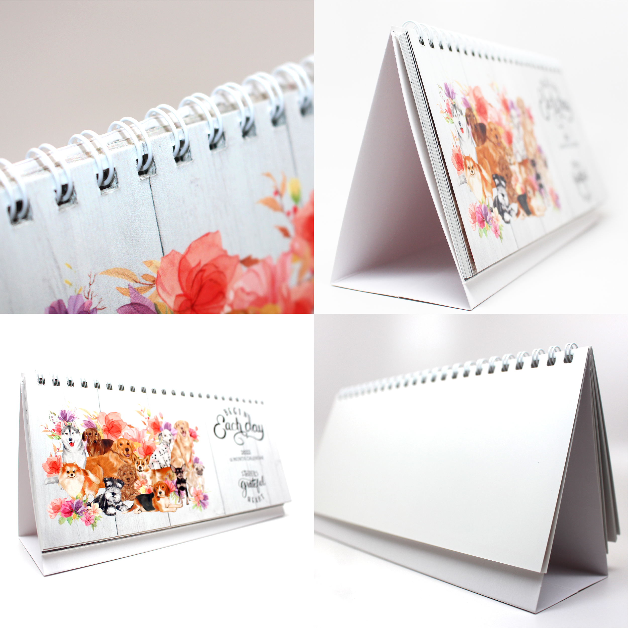 iARTidea 2022 Desk Calendar Dog and Floral Bloom Theme Stand Up
