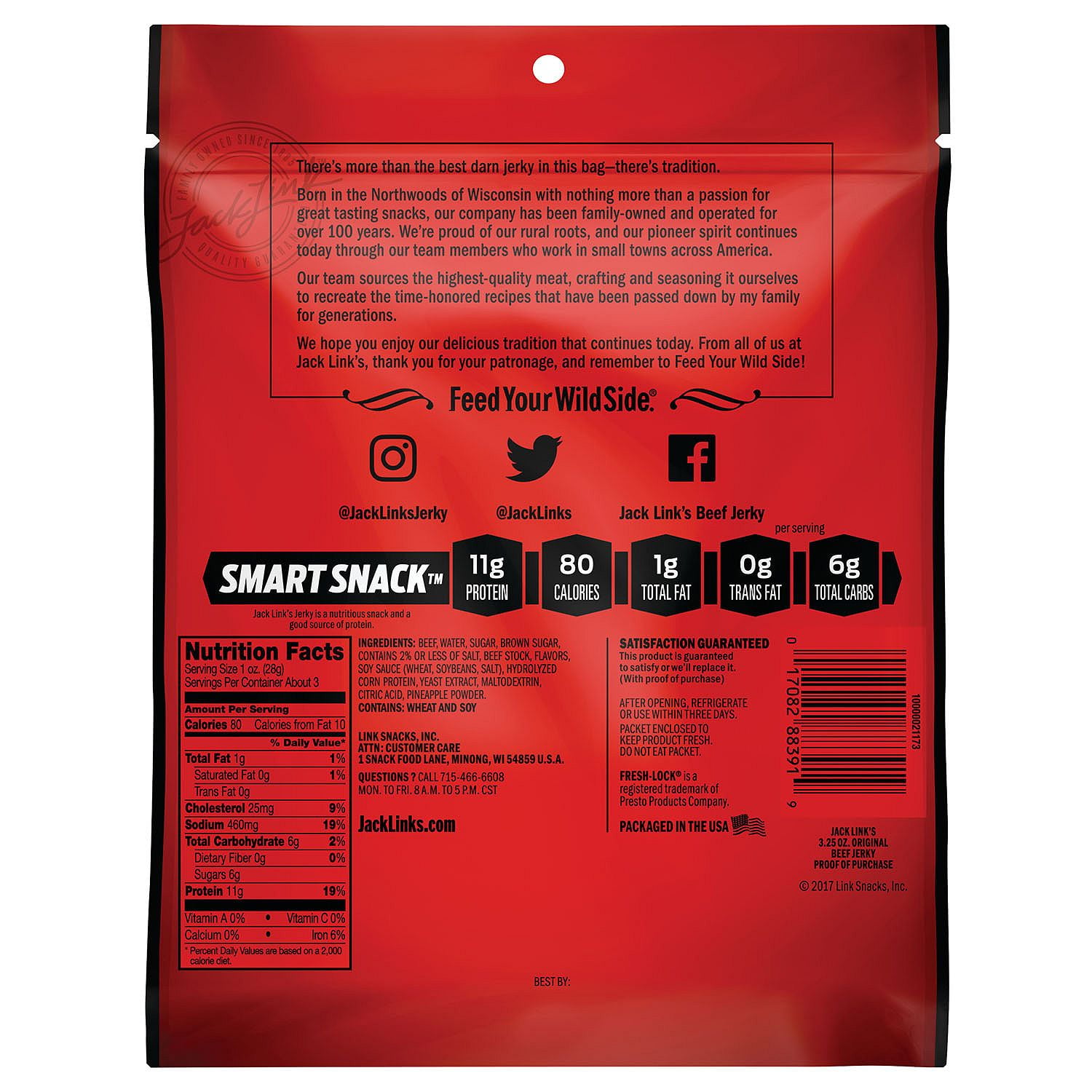 It all started in 1885. Jack’s great-grandparents settled in the north woods of Wisconsin, bringing with them family meat snack recipes and an adventurous pioneer spirit. Their time-honored tradition of using only premium cuts of meat and the finest spices and seasonings still holds true today.Jack Link’s Original Beef Jerky (3.25 oz., 4 ct.)