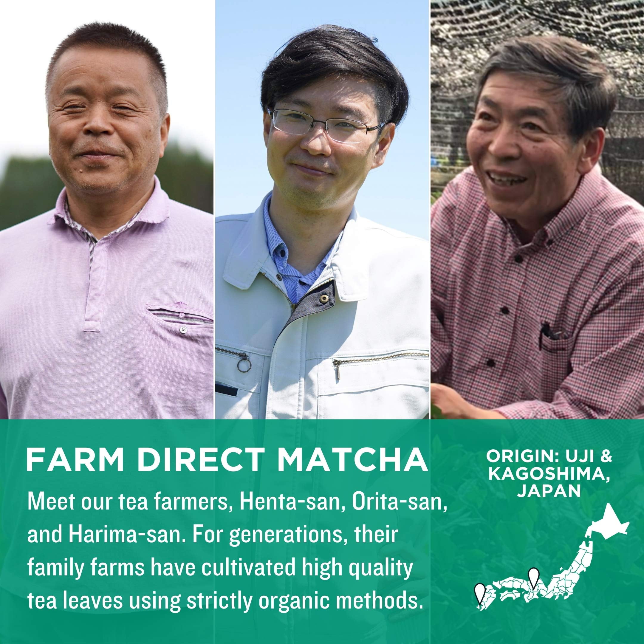 Farm Direct Organic Matcha from Japan Authentic JapaneseOrigin Matcha is produced across Japan, but we’ve found the very best organicmatcha to be ground from tea leaves grown in the Uji and Kagoshima regions.Family-owned partner farms fuse traditional and modern techniques to cultivateleaves brimming with flavor and nutrients. 100% USDA Organic True, authenticJapanese matcha that is certified organic is still in extremely scarce supply(less than 1% of Japanese tea farms are certified!) — and we have beencarefully forming partnerships with the preeminent farms to be able to supplythe best quality organic matcha for fair value. Lab Tested for Integrity Wetest our products both at the farms where they are grown, as well as by thirdparty laboratories here in the U.S. Our quality standards were developedthrough a combination of state and federal guidelines as well as consultationwith scientific research and analysis. Passionate Farmers & TraditionalTechniques Shade grown for 3-4 weeks prior to harvest to boost nutrientcontent Selectively picked, with stems and veins removed to improve textureand taste Stone ground into an ultrafine powder, keeping delicate nutrientsintact Carefully packed into air tight, high grade packaging to preventoxidation from air and UV light Read more Cafe Style Sweetened Matcha LatteMix Up to now, latte mixes we were finding at the grocery store were all fullof weird emulsifiers and artificial ingredients. We believe all a latte trulyneeds is good quality matcha and a little sweetness, to which you add your ownfresh milk (whichever kind you like!).
